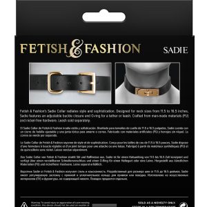 Fetish & Fashion’s Sadie Collar radiates style and sophistication. Designed for neck sizes from 11.5 to 16.5 inches, Sadie features an adjustable buckle closure and O-ring for a tether or leash. Crafted from man-made materials (PU) and nickel-free hardware. Leash sold separately.Made of PU and nickel-free zinc-alloyPhthalate freeFor neck sizes from 29,2 – 41,9 cmAdjustable buckle closureO-ring
