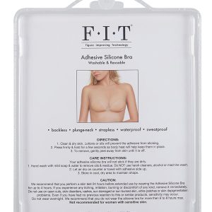 FIT (Figure Improving Technology) Adhesive Silicone Bra cup A, B, C or D, washable and reusable. Applicable for: BacklessPlunge-neckStraplessSweatproof Directions: Clean and dry skin. Lotions or oils will prevent the adhesive from sticking.Apply each side, press firmly and hold for a few seconds then connect with middle clasp.To remove, gently peel away from skin until it is off.Care Instructions: Your adhesive silicone bra will not stick if they are dirty.Hand wash with mild soap and water to remove oils and residue. Do not use harsh cleaners, alcohol or machine wash.Let air dry on counter or towel with adhesive side up.Store in cool, dry area to maintain shape.