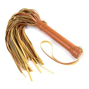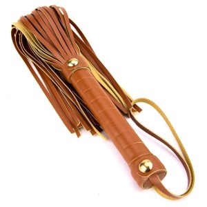 The Blaze Elite flogger has 30 cm long leatherlook strands and a strong and sturdy easy-grip handle made of the same material with a convenient wrist cord. Designed to satisfy your most erotic desires! Gently trace your lovers body to build anticipation, and build up to short sharp whips to excel the fun to breathtaking pleasure! The cognac coloured artifial leather makes the flogger a stylish accessory for anyone who loves BDSM and classy looks. Flogger made of artificial leather30 cm strandsStrong and sturdy easy-grip handleWith wrist cord Warm cognac-coloured BDSM gear made of artificial leather exudes a unique and alluring charm. The rich hue of cognac adds an element of sophistication and elegance, while the use of artificial leather ensures a cruelty-free and ethical alternative. This combination creates a visually striking aesthetic that can enhance the confidence and self-expression of those who choose to embrace this style. These Blaze items can be a powerful symbol of empowerment and individuality.
