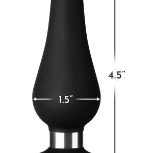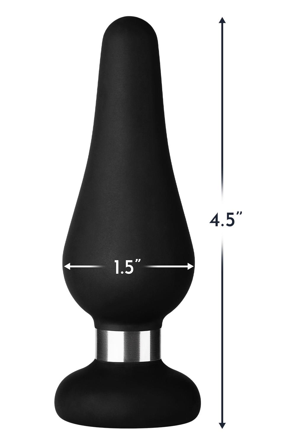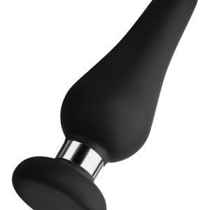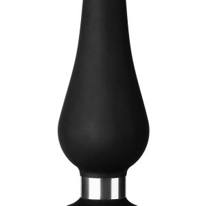 Silky-Smooth 100% Premium SiliconeFlexible for Easy InsertionFlat Base (Not a Suction Cup)Shiny Steel Ring Between the Base and the Body of the Plug