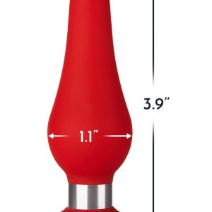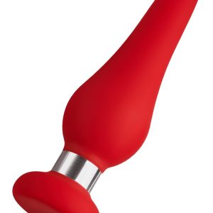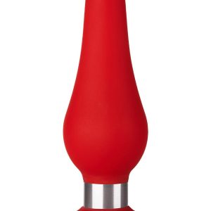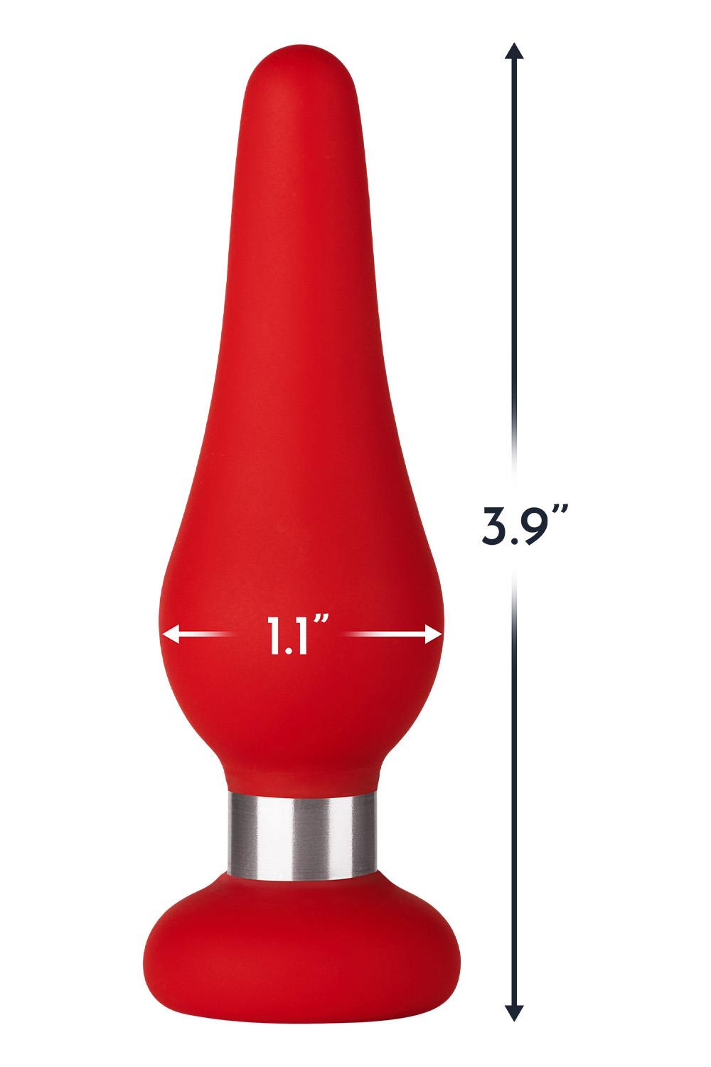 Silky-Smooth 100% Premium SiliconeFlexible for Easy InsertionFlat Base (Not a Suction Cup)Shiny Steel Ring Between the Base and the Body of the Plug