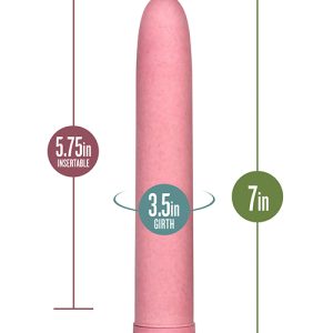 Length 7 inch / 17,7 cmInsertable length 5.75 inch / 14,6 cmWidth 1 inch / 2,5 cmAdjustable multi-speed vibrationsMade with Biofeel, a plant-based materialRequires 2 AA batteries, not includedPhthalate, latex, and fragrance free Bioplastic ♻️ Download Gaia FAQWhat makes Gaia an eco-friendly, sustainable product?Gaia is the first collection of sustainable made vibrators, made of Blush’s proprietary materials BioFeelTM, a non-petroleum plant-based bioplastic, a polymer compound mixed with plant-based material, and BioTouchTM, a natural rubber material with great high tensile strength and tear resistance for long-lasting durability. The non-petroleum-based materials such as natural rubber and bioplastic are a far better choice for the environment than synthetic rubber or plastic. Additionally, these materials are mindfully sourced from sustainable and responsible farmers.What is BioFeelTM?BioFeelTM is Blush’s unique plant-based bioplastic, a polymer compound material mixed with plant-based materials. This material is the perfect choice for a vibrator since it is nonporous, making it body safe and easy to clean. It looks and plays like any hard plastic toy. Blush’s BioFeelTM is smooth to the touch, and is made from at least 35% sustainable non-petroleum based plant matter (wheat). Other manufacturers are using 100% petroleum based plastic. By using a natural plant based material, Blush is creating less greenhouse gases. This makes our products more sustainable and better for the environment. What is BioTouchTM?BioTouchTM is Blush’s proprietary version of natural rubber material. It meets strict mechanical and chemical requirements and is sturdy, but soft enough for pleasure products. It has high tensile strength and tear resistance ensuring your toy will go the distance with you. BioTouchTM is nonporous, making it body safe and easy to clean. BioTouchTM is coated with our