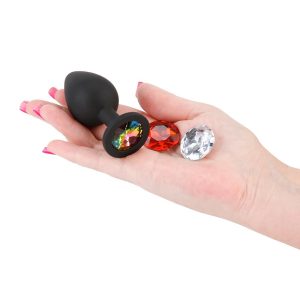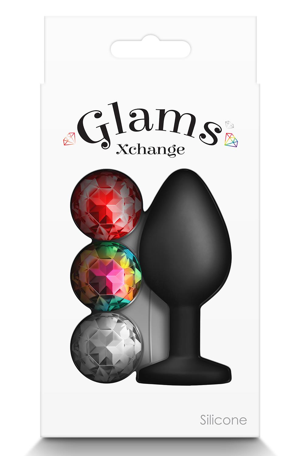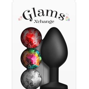 Dopasuj swój nastrój i swój łup z Glams Xchange. Modny dodatek do kuszenia i romansu. Wykonany z najwyższej jakości silikonu z trzema wymiennymi kolorowymi klejnotami.