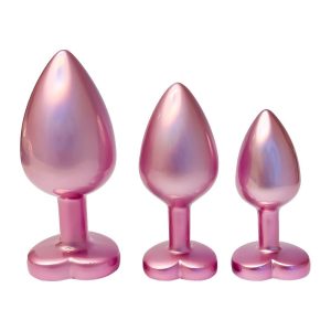 Gleaming Love collection presents this set of pink pearl-finished anal plugs