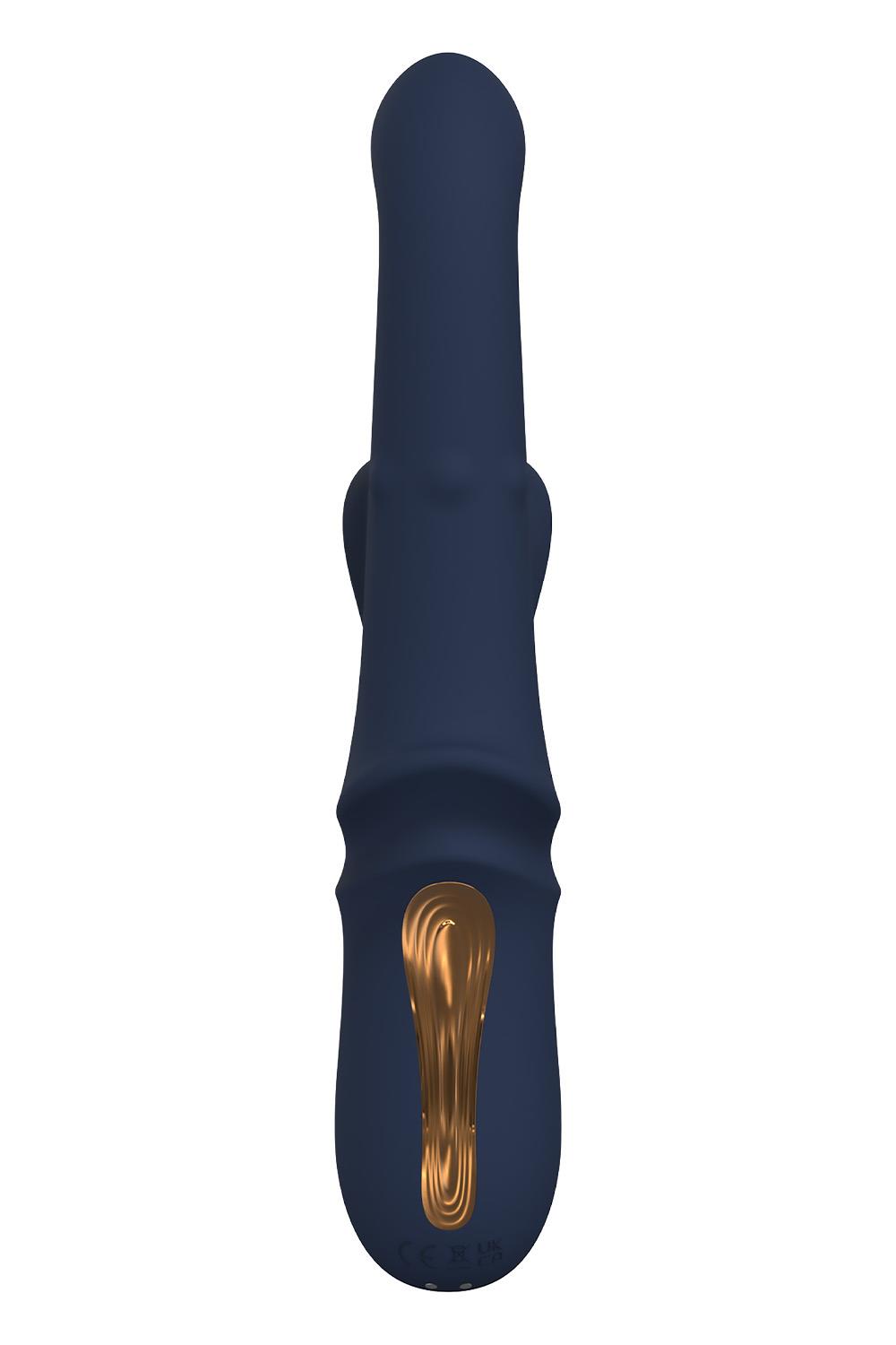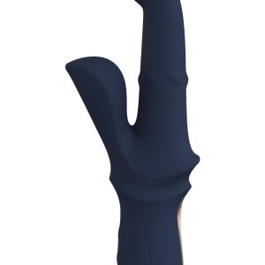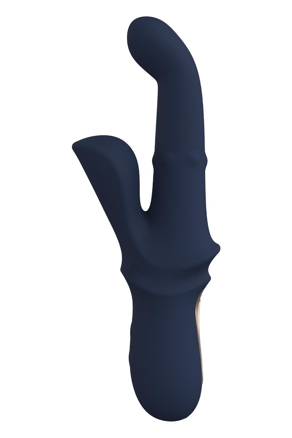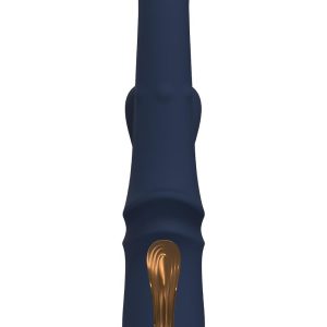Duo vibrator Iris, with sliding beads and nodding function. In the same style as the other Goddess Collection toys, Iris is made of dark blue silicone with gold coloured details. The Goddess Collection duo vibe has 10 nodding and sliding bead vibrations in the main body and 7 vibration rhythms and 3 speeds in the clitoris stimulator. For ease of use there are separate buttons for control of the functions in the main body and those in the clitoral stimulator. Iris is shower friendly, made of bodysafe materials and rechargeable with the included magnetic USB cable.Duo vibratorNodding and sliding bead vibrations: 10Vibration rhythms and speeds in clitoris stimulator: 7 + 33 Independent motorsOperation with 2 buttonsIPX6 Shower friendlyMade of bodysafe silicone and ABSRechargeableMagnetic USB cable includedCharging time: 120 minutesUse time at highest speed: 54 minutesUse time at lowest speed: 63 minutesLength 23,5 cmDiameter 3,2 cm