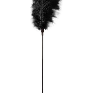 Large black feather tickler on a wand.Great for teasing or tickling.Total length: ca 73 cm / 28 inch.Length of handle: 43 cm / 17 inch.