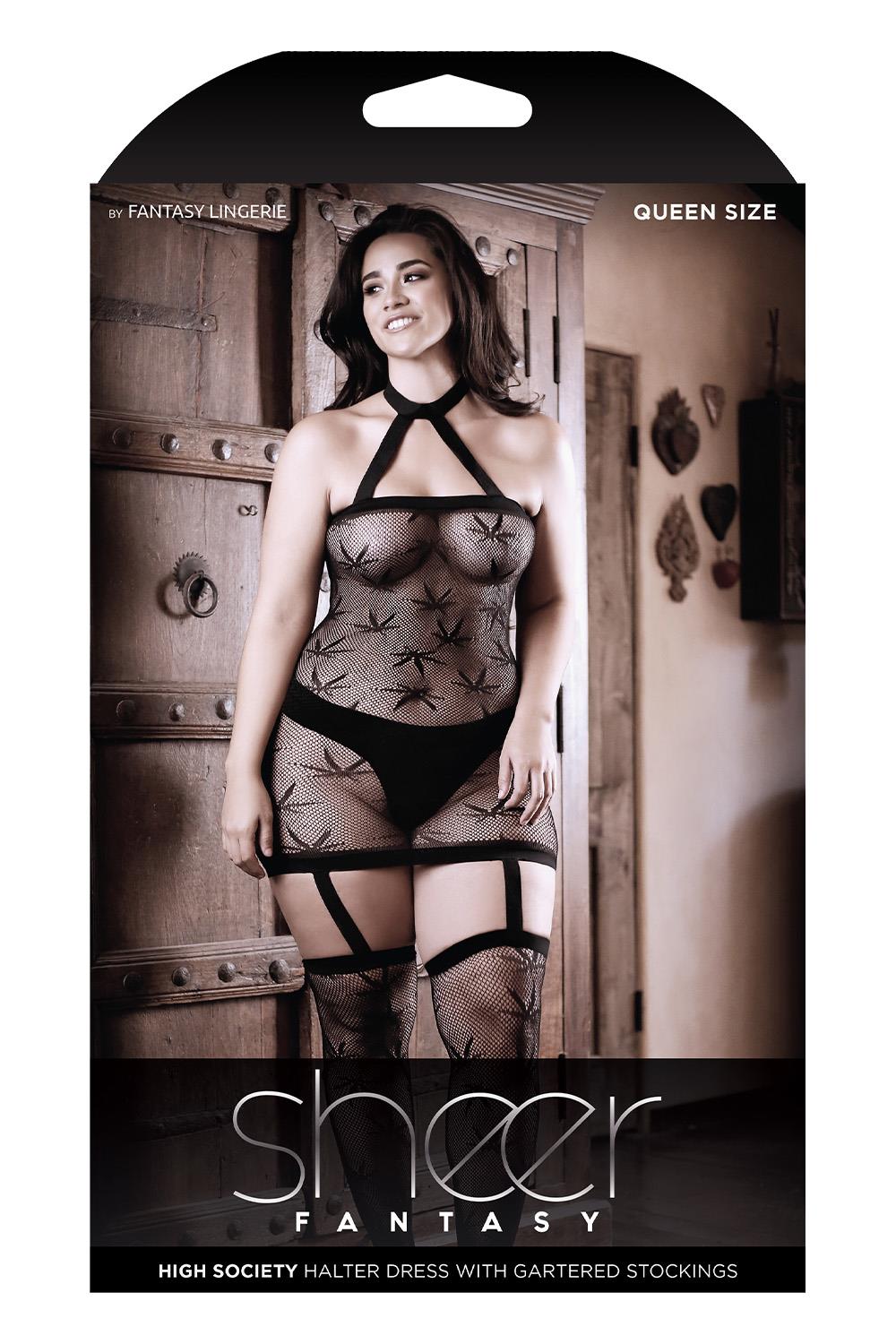 Halter Dress with Attached Gartered Stockings Fabric Content:90% Nylon, 10% SpandexDownload Size Chart Fantasy Lingerie