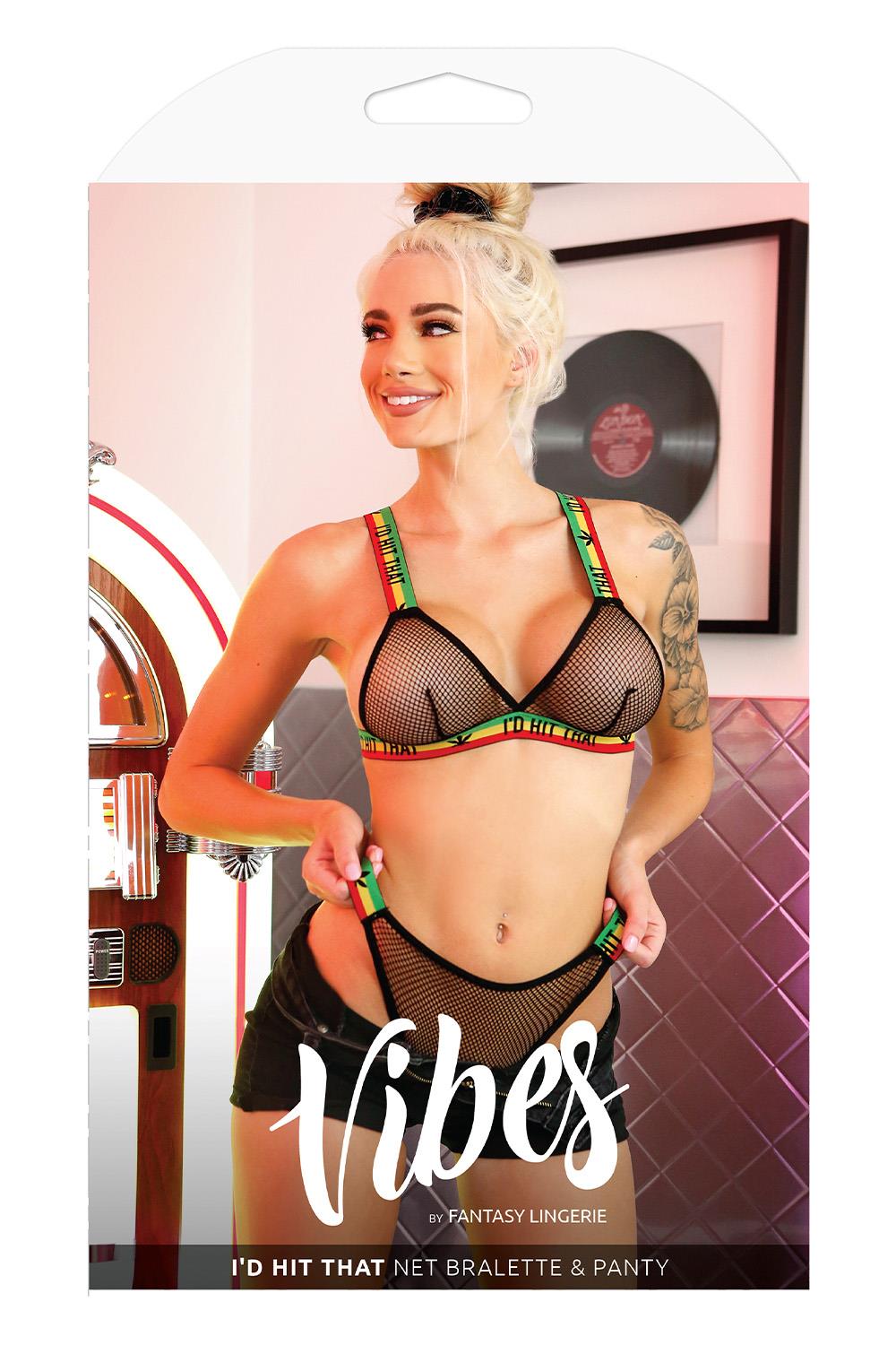 Net Bralette with Adjustable „”I’d Hit That”” Elastic Straps and Matching PantyFabric Content:90% Polyamide 10% SpandexNet Fabric