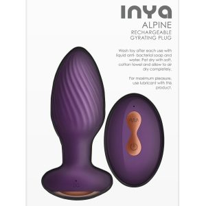 Wiggle in your butt with Alpine by INYA. This remotely operated butt plug features an innovative gyrating motor for extraordinary sensations. Experience luxury and pleasure with the water resistant and rechargeable Alpine. Suitable with all lubricants.Our Remotely Operated Gyrating Butt Plug: Experience unparalleled pleasure with our innovative and cutting-edge anal toy. This remotely operated butt plug is designed to take your sensations to new heights. The secret lies in its revolutionary gyrating motor, which delivers extraordinary and unique sensations that will leave you breathless. With just a touch of a button on the remote control, you can explore a world of thrilling vibrations and rotations, customized to suit your desires. The ergonomic design ensures a comfortable fit, while the flared base guarantees safety during play. Crafted from premium materials, this butt plug is both body-safe and easy to clean. Whether you’re indulging in solo pleasure or exploring with a partner, the remote control feature adds an element of surprise and excitement to your intimate moments. Prepare to be transported to a realm of extraordinary sensations and discover new depths of pleasure with our remotely operated gyrating butt plug. Unleash your desires and embrace the next level of anal pleasure today.Gyrating Butt PlugWireless RemoteWater-ResistantMade of silicone and ABSPhthalate free, body safeNumber of speeds: 6Number of functions: 10Total modes: 16RechargeableCharger type: USB-MagneticCharge time: 90 minutesRun time: 60 minutes