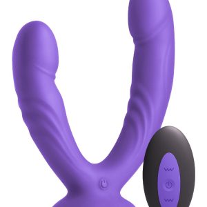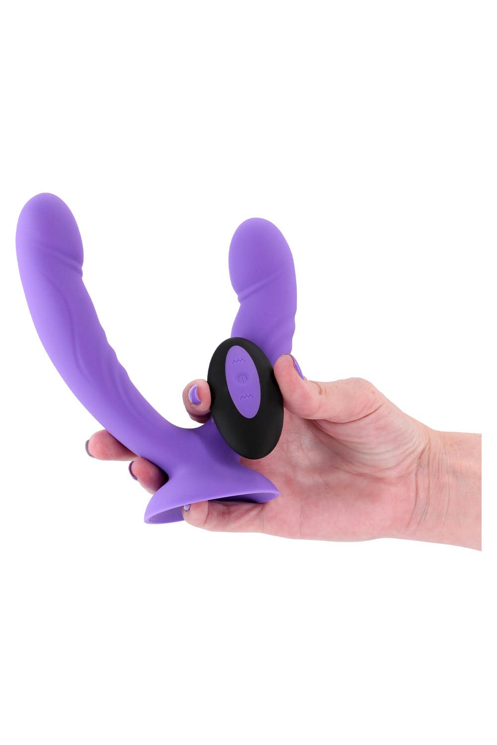 INYA Duet is a vibrating double dildo designed for solo indulgence or shared intimacy. Made of smooth, body-safe silicone, Duet features a strong suction cup base and a splash-resistant remote control for hands-free pleasure. Rechargeable. Water resistant. Compatible with all lubricants. 3 speeds / 7 functions. CR2032 (1) for remote included.Vibrating double dildoWireless remote control3 Vibration speeds / 7 functionsRechargeable vibratorRemote contains a CR2032 batteryWater resistantCompatible with all lubricantsProduct Dimensions:Vibe: 6.61 x 5.04 x 2.64 inch / 16,8 x 12,8 x 6,7 cmRemote: 2.56 x 1.38 x 0.63 inch / 6,5 x 3,5 x 1,6 cmInsertable Dimensions:S1: 5.51 x 1.3 inch / 14,0 x 3,3 cmS2: 4.41 x 1.26 inch / 11,2 x 3,2 cmProduct Material: SiliconeCharger type: USB-PinCharge time: 120 minutesRun time: 75 minutes