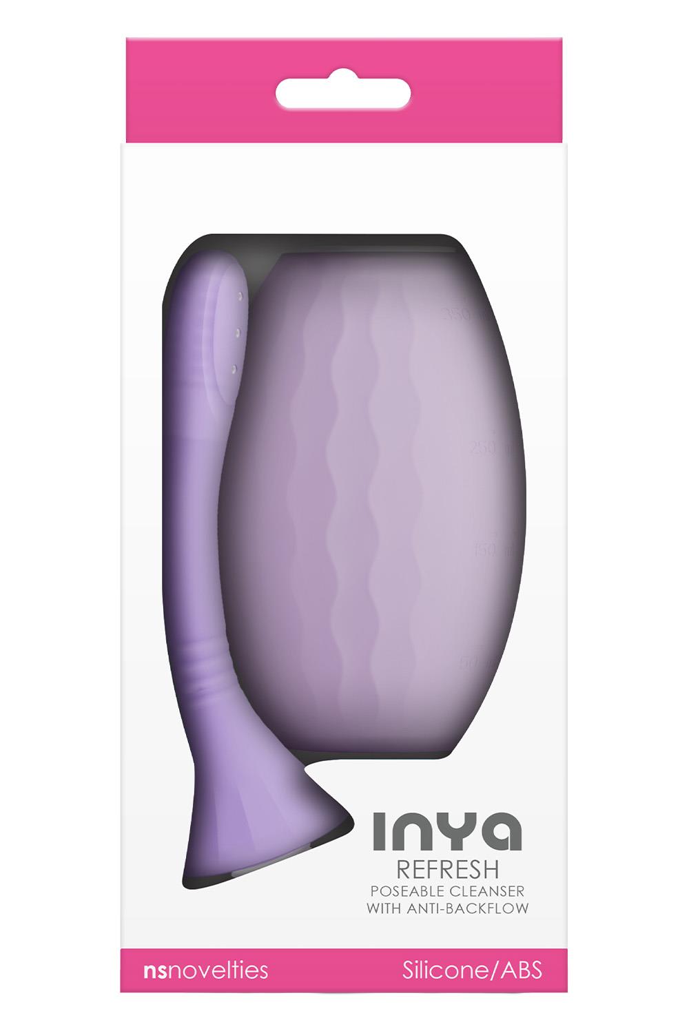 INYA Refresh is an intimate hygiene device featuring an anti-backflow design for improved cleanliness and safety. Includes a squeezable bulb and poseable nozzle made of body-safe silicone. Easy to use, easy to clean, and compatible with all lubricants.Poseable cleaner with anti-backflowIncludes a squeezable bulb and poseable nozzleCompatible with all lubricantsProduct Dimensions: 10.04 x 3.11 x 3.11 inch / 25,5 x 7,9 x 7,9 cmInsertable Dimensions: 4.72 x 0.79 inch / 12,0 x 2,0 cmProduct Material: Silicone