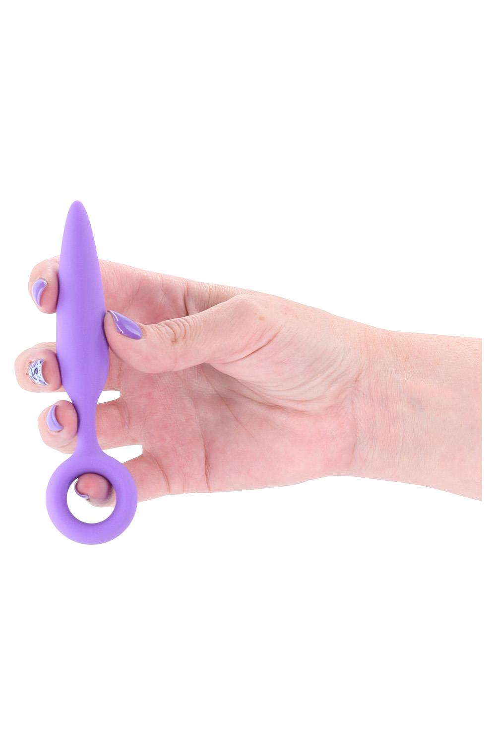 Tapered and slim anal plug made of plush silicone with finger ring for comfort and control. Perfect for beginners. Compatible with all lubricants.Tapered and slim anal plugWith finger ringCompatible with all lubricantsProduct Dimensions: 5 x 1.34 x 0.79 inch / 12,7 x 3,4 x 2,0 cmInsertable Dimensions: 3.54 x 0.79 inch / 9,0 x 2,0 cmProduct Material: Silicone