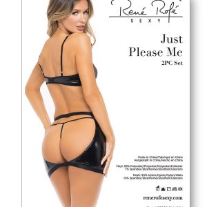 Just Please Me 2-częściowy zestaw. Dwuczęściowy zestaw Just Please Me to idealne połączenie dziewczyny z sąsiedztwa i niegrzecznej uwodzicielki. Delikatna, pajęczyna koronka kontrastująca z elegancką, elastyczną imitacją lakierowanej skóry tworzy idealne połączenie grzecznej dziewczynki, która się zepsuła! Pielęgnacja tkanin