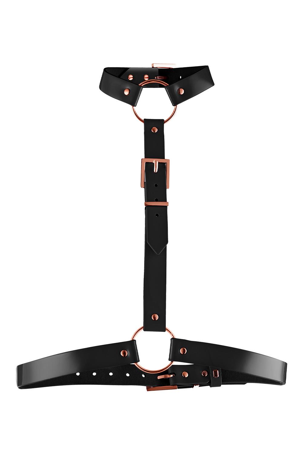 Kinky Diva – High Gloss Body Harness. This Kinky Diva High Gloss Body Harness is a real High Fashion Fetish Accessory. Super sensual and stylish on your bare skin, but also great to wear over a black dress or under a blazer. Super Glam! Or combine it with other Kinky Diva BDSM items. This Body harness is of course also perfect in combination with Kinky Diva High Gloss BDSM items.Material: Patent Vegan LeatherAdjustable from Small to Large / XLargeDownload the Kinky Diva Lookbook High Gloss