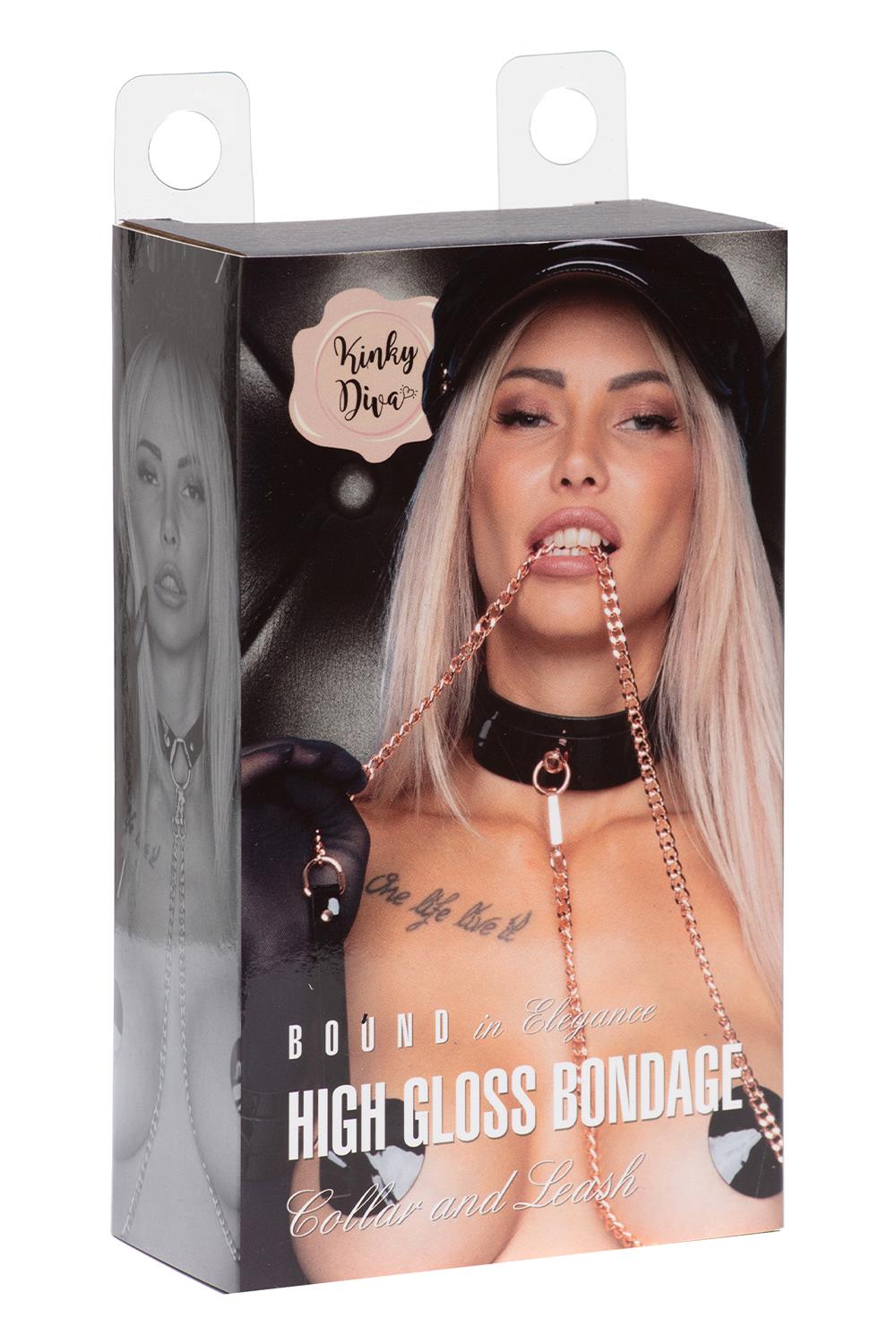 Kinky Diva – High Gloss O-Ring Collar + Leash. The collar in High Gloss Vegan Leather fits perfectly around the skin and can be worn with or without a chain. The length of the chain is comfortable to use. The collar is made of a sturdy, soft High Gloss Vegan Leather material and can also be worn for a longer period of time.Material: Vegan Leather / MetalCollar length: 30 cmStrap length: 43 cmWidth: 5 cmAdjustableLength chain + handle: 120 cmDownload the Kinky Diva Lookbook High Gloss