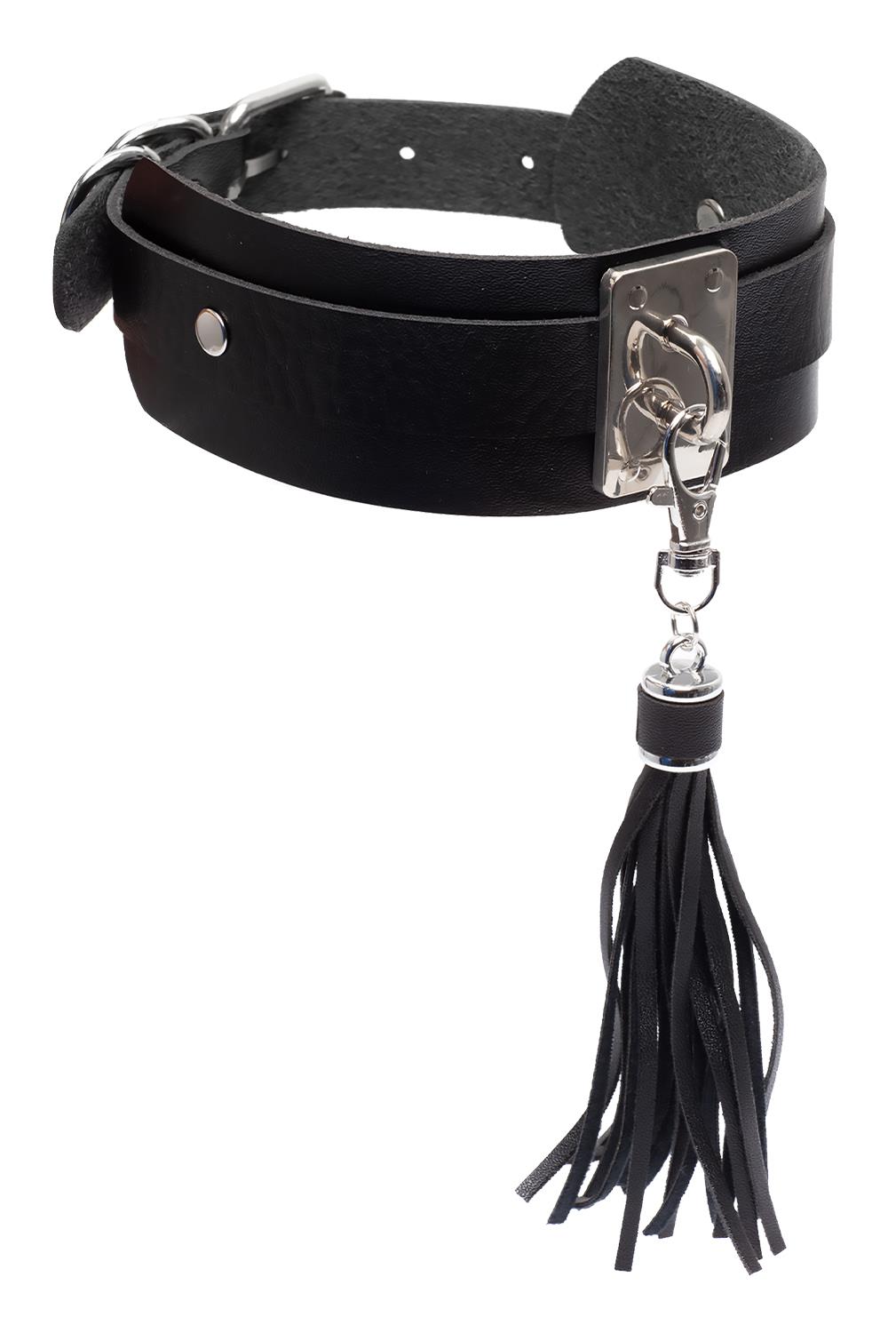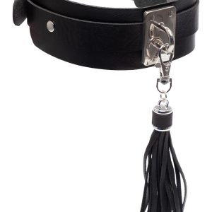 A beautiful collar with a small naughty detail. A small tassel or a small whip on your collar that you can remove with the clip. give a little naughty tap if your partner is a bit naughty or caress the skin with the soft vegan leather tassels. This Vegan Leather collar is adjustable and fits effortlessly on your naked skin. Do you want to look sexy, both in the intimacy of the bedroom, at a romantic dinner or at an exciting club? Then this Kinky Collar is the right choice.Collar Dimensions: 43.5 cm long, 4.5 cm wideTassel Length: 15cmClosure: ClipMaterial: Vegan Leather, metalNumber of adjustable holes: 6The colours on the screen may differDownload the Kinky Diva Lookbook Kinky Collars