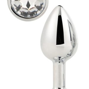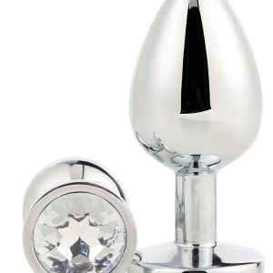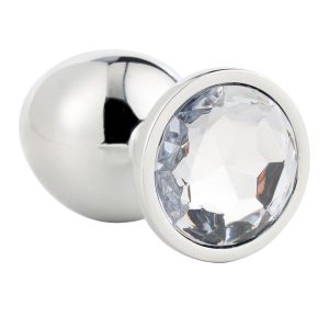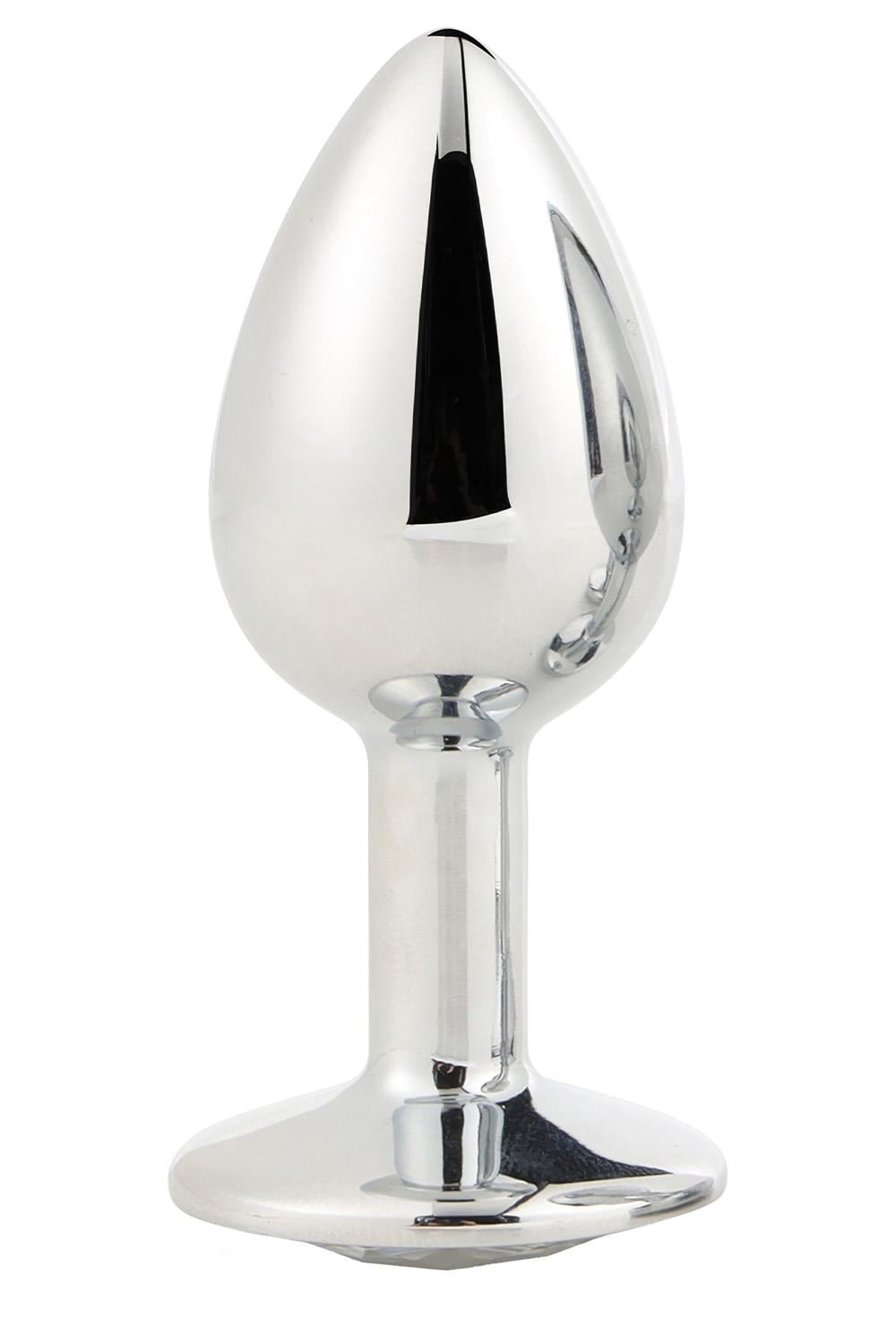 The Gleaming Love collection presents this Small sized shiny anal plug with gem stone. Made of smooth lightweight aluminium and seamless, this pleasure toy is easy to glide and the flared base ensures a sense of security while keeping the jewel sitting comfortably between the butt cheeks.This jewelled plug is beautifully decorated with a delicate round gem stone. From tip to base the seamless anal plug features a glimmering sheen that pairs wonderfully with the sparkle of the matching gem stone. The tapered bulb shape of the plug combines ease of use with erotic backdoor pleasure. The Gleaming Love plug can be heated or cooled in water before use to provide additional sensations.A storage bag made of soft velvety fabric that closes with a drawstring is included. Small plug:length 7,1 cmdiameter 2,7 cm
