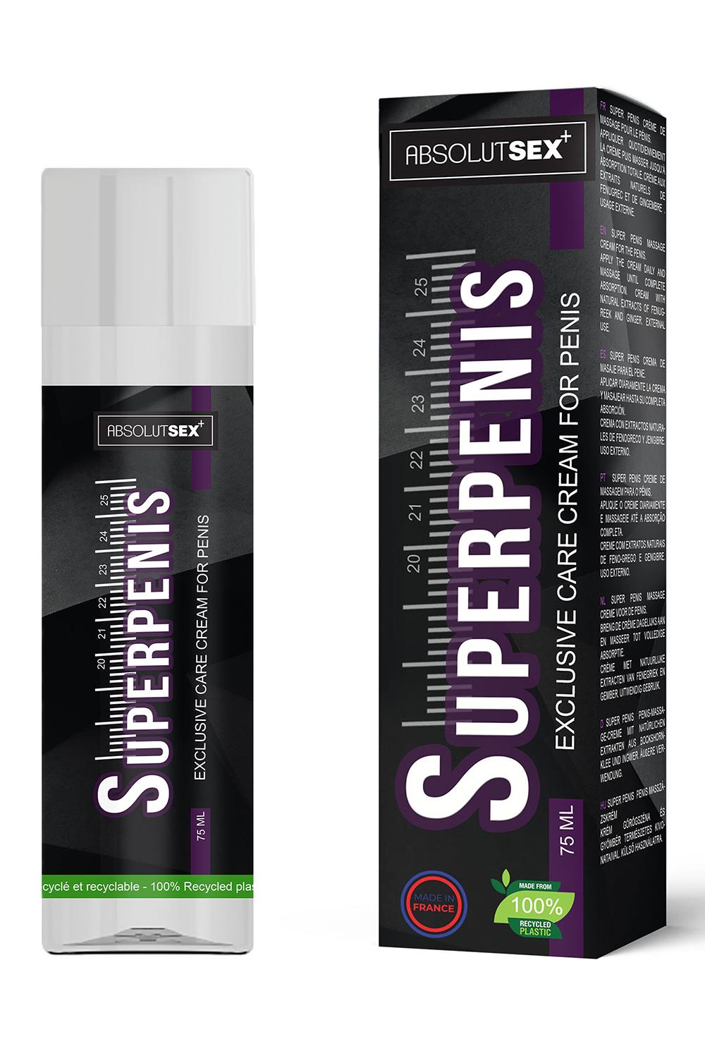 Super Penis to krem do pielęgnacji penisa marki AbsolutSex firmy Ruf, który pomaga poprawić rozmiar penisa. Nakładaj krem Super Penis codziennie na całą długość penisa i masuj aż do całkowitego wchłonięcia się kremu.