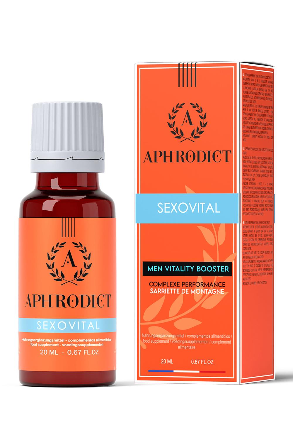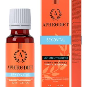 Aphrodict Sexovital to stymulator seksualny dla mężczyzn, który podniesie Twoje libido i zaoferuje bardzo intensywne chwile rozkoszy dla 2 osób na szalone noce! Ten afrodyzjak zadziwi Cię swoją skutecznością dzięki swojej autentycznej recepturze, zapewniając niezawodne rezultaty u źródła jego światowej sławy. Doprowadzi Cię do intensywnych przypływów pożądania i zwiększy nie tylko Twoje libido, ale także sprawność seksualną. Zawartość: 20 ml Cząber: