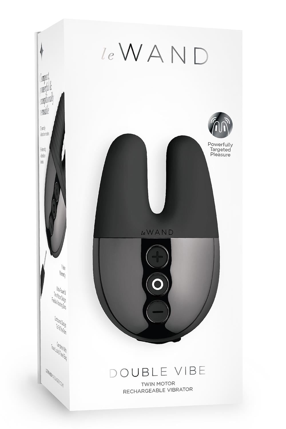 Vibration modes6 Intensity levelsShower-friendlyDual-motor designWhisper quietTravel lockPerfect for solo or couples play, Le Wand Double Vibe is a palm-sized, bunny-eared rechargeable vibrator that can nestle and satisfy even the smallest of pleasure zones.Featuring ultra-powerful motors in each of the pinchable vibrating ears, the Double Vibe provides 15 rumbly vibration modes and 6 arousing intensity levels- making it the most formidable vibe for its miniature size.Built with simple, intuitive controls for superior one-touch functionality, the Le Wand Double Vibe offers sensational dual stimulation where it matters most. In addition, this body-safe luxury vibe comes complete with an extra textured silicone sleeve for enhanced pleasure, a travel lock for adventures on the go, and an LED charging indicator and micro-suede travel pouch for discreet storage.Compact, mighty & exceptionally versatile, the Le Wand Double Vibe is the ultimate fun-sized pocket rocket.Chrome CollectionChrome is a collection of vibrators that are powerful,