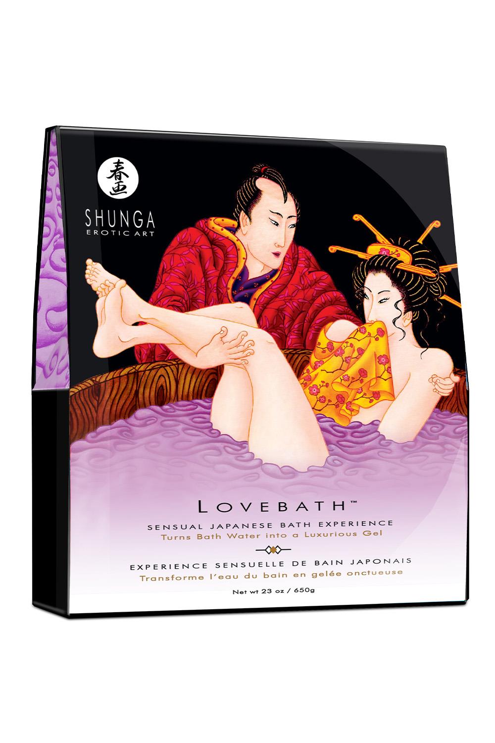 Love Bath, a sensual Japanese bath experience. Your bath water will transform into thousands of delicate pearls. A subtle perfume will fill the room as you step into this oasis with your lover. (Do not use in motorized bath tubs / spa or jacuzzi type baths). RelaxesLeaves skin silky smoothNon stainingPerfumes the roomParaben freeGluten freeVeganWash with water650 gramsThis product contains 2 sachets. Empty sachet #1 into bathtub, already half filled with warm water. As you lightly stir, within 5 to 10 minutes, water will turn to an unctuous pearly gel. A few minutes before stepping out, pour the sachet #2. Lightly stir the gel for a few minutes so that it returns back to water.