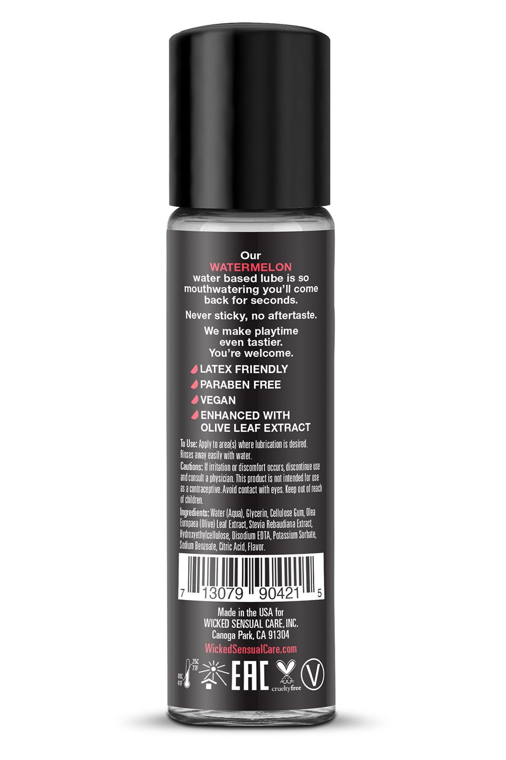 Wprowadź lato do swojego życia seksualnego! Całkowity, lizalny i pyszny, osobisty lubrykant Wicked Aqua Watermelon dodaje subtelnego i pysznego, naturalnego aromatu, aby zwiększyć przyjemności jamy ustnej. Lekka i jedwabista formuła na bazie wody stanowi idealne zmysłowe połączenie eleganckiego lubrykantu i doznań smakowych. Nigdy nie lepki i bez posmaku, Wicked Aqua Watermelon zaspokaja Twój apetyt na słodycze i intymne pragnienia w jednym niesamowitym produkcie. Seks oralny nigdy nie smakował tak dobrze.