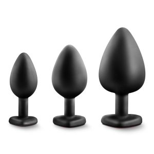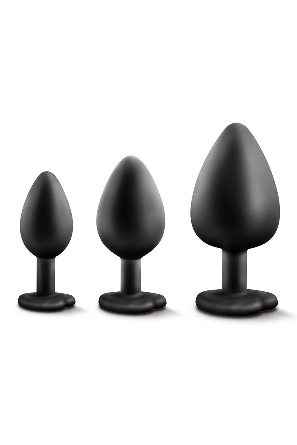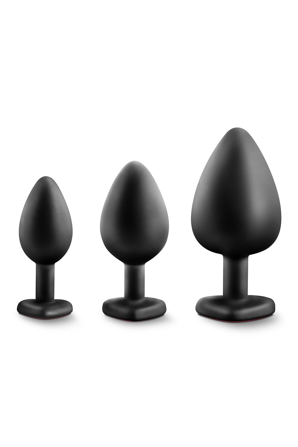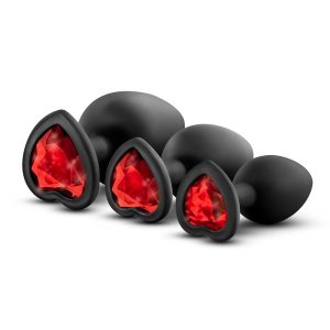 Your anal training play just got pretty with this sweet set of Bling Plugs! Starting with the small size for beginners, you can slowly graduate to the medium size and then to the large size when you are fully comfortable. This kit includes three plugs, ranging in size from small, medium, and large. Each plug features a tapered tip for easy insertion and a tight neck for gentle pressure and extended wear. Use this kit if you and your partner are new to anal play. Or just use it in addition to your regular erotic play. For the best experience, use with your favorite, high quality water-based lubricant.Designed with a heart shaped base and a beautiful ruby red colored faux gemstone. Designed with a heart shaped base and a beautiful faux gemstoneTraining kitComes with 3 sizes, Small, Medium and LargeGreat for getting acquainted with anal playFlared, so the plug stays securely insertedBody safe satin smooth silicone, contains no fragrances, phthalates, paraffins, or latexLength:Small 3 inch / 7,6 cmMedium 3.25 inch / 8,2 cmLarge 3.75 inch / 9,5 cm