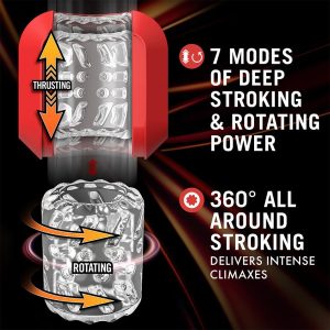 Unleash your desires with the M For Men Slambox! This powerhouse automatic male masturbator is engineered for users who demand more out of their stroker. All packed in a discreet and sleek red box, this stroker is primed to deliver a wild ride of thrills. It’s equipped with 7 modes of intense rotational stroking power that envelops you in a vortex of incredibly pleasing sensations. Amp up your experience with each click of a button, while 360° rotational stroking stimulates every inch of you, building up towards a stronger and harder release. The Slambox showcases an open-ended design that fits all sizes, accommodating all widths and lengths with its spacious inner chamber. Slide right in to enjoy the divine touch of the soft and textured interior that feels heavenly smooth and realistic when inside. With seamless USB charging, enjoy 60 minutes of run time on a single charge, so the fun never stops. Effortlessly power up and go as many rounds as you can handle with this pleasure box.7 Modes of deep stroking and rotating power360° All around stroking delivers intense climaxesSoft and textured inner chamber feels like the real thing!One button control makes stroking easier than everType-C USB rechargeable. Go longer and harder than before!