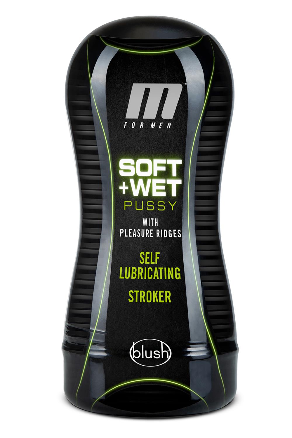 The M for Men Soft & Wet cup is loaded with fun! Inside are stimulating ridges. This pocket stroker is Self-Lubricating. Add a little water or saliva and everything gets slippery. Just like the real thing! Squeeze the cup and open or close the air valve for more suction and pleasure. M for Men masturbators are soft, flexible, and filled with sensational textures. Self lubricating properties are temporary. It will last up to 12 uses. To clean, wash with soap and water. Pat dry and allow to air dry before storing. Use product only with water based lubricants. It is recommended to start using water based lubricants after self lubricating properties begin to diminish. Measures 7.25″ length by 3.25″ width, considerably larger than most other similar products on the market.The Self Lubricating technology is built into the actual material TPE.  The component is proprietary and is body safe.  The user adds water and this will activate the self lubrication.  The self lubrication feature lasts about 10 times, (more or less) depending on how vigorous the user is with the toy. After that, the self lubrication will wear off and they can use their own water based BOO lube.Self-lubricating: slippery when wet, just add a little water and slide inTextured: enjoy the erotic sensations as the ridges massage your shaftMild suction is manually activated by manipulating air valve, a nut busting experienceSqueeze the center of the cup to tighten and enhance your pleasureBuilt for real men this stroker measures 7.25 inch length x 3.25 inch width, as much as 20% larger than comparable masturbators on the marketLength: