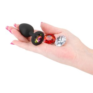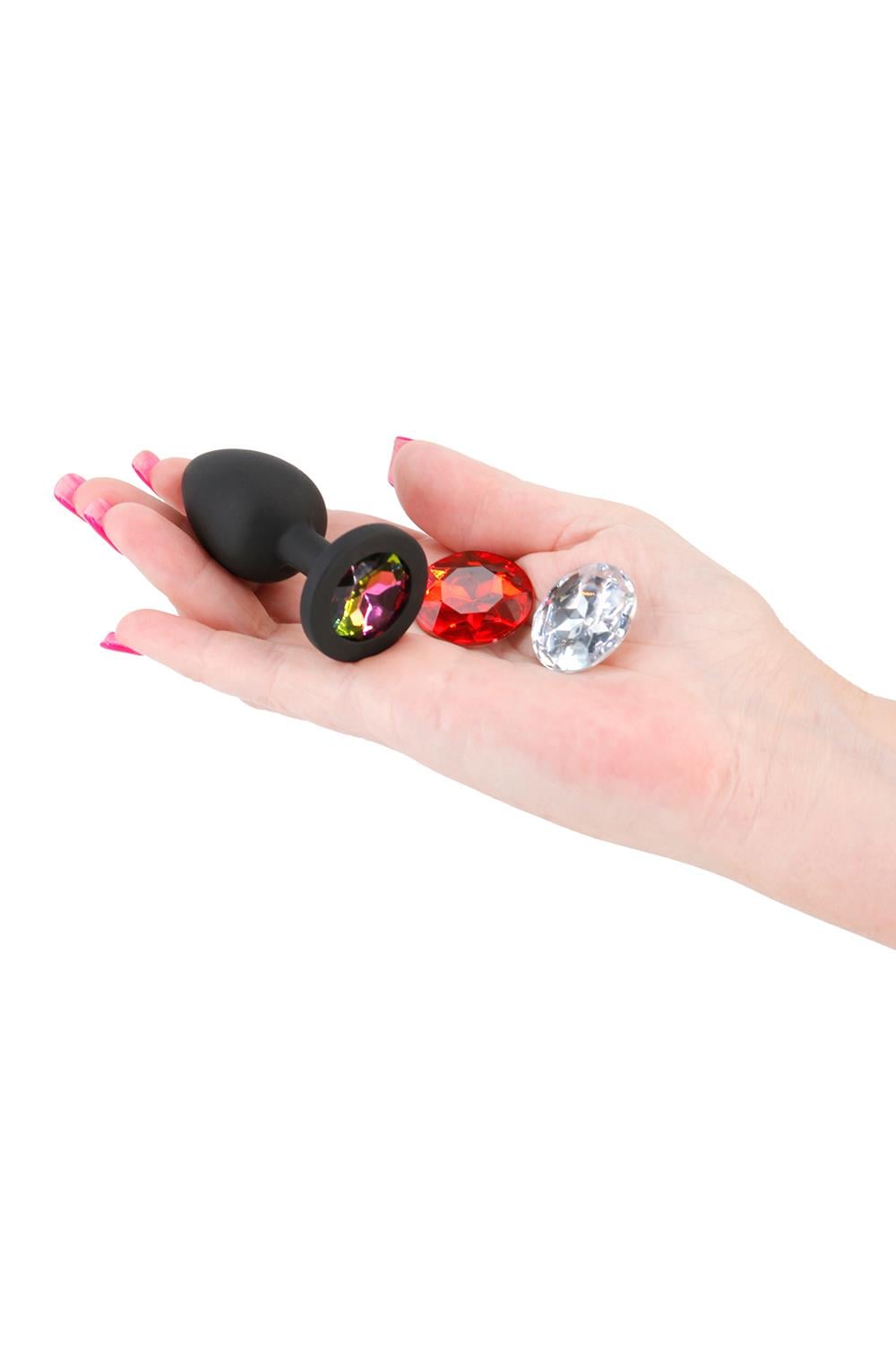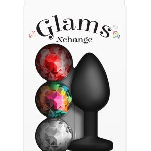 Dopasuj swój nastrój i łupy dzięki Glams Xchange. Modny dodatek kuszący i romantyczny. Wykonane z najwyższej jakości silikonu z trzema wymiennymi kolorowymi klejnotami. Z 3 wymiennymi okrągłymi klejnotami. Wykonane z silikonu i ABS. Bezpieczne dla organizmu, nie zawiera ftalanów.