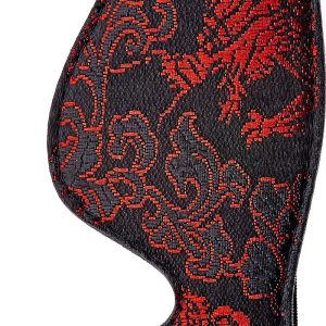 Ta opaska na oczy jest ozdobiona haftem i podszyta miękkim, ale wytrzymałym neoprenem, zapewniając zmysłową i wygodną sesję zabawy. Pasek wykonany jest z rozciągliwego materiału, który dobrze dopasowuje się do głowy.