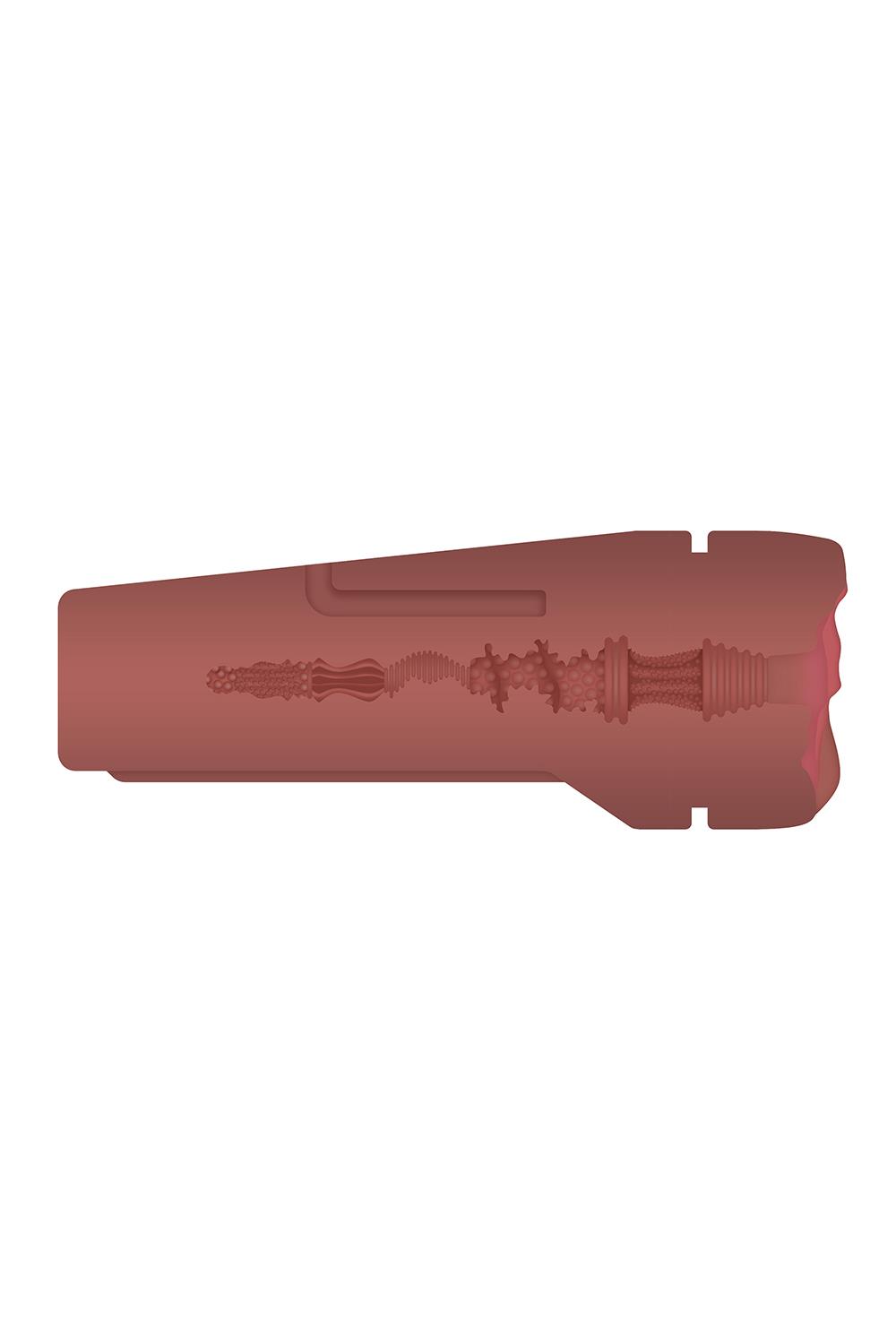 Doświadcz ostatecznego uwolnienia dzięki temu miękkiemu i rozciągliwemu kanistrowi, który jest niesamowicie realistyczny. Prześlizgnij się przez różowe wargi pochwy i poczuj ciasny kanał wewnętrzny, który ma teksturę zapewniającą realistyczną jazdę, a następnie zwiększ swoje doznania dzięki wyciskanemu pojemnikowi, który może doprowadzić Cię do szaleństwa!