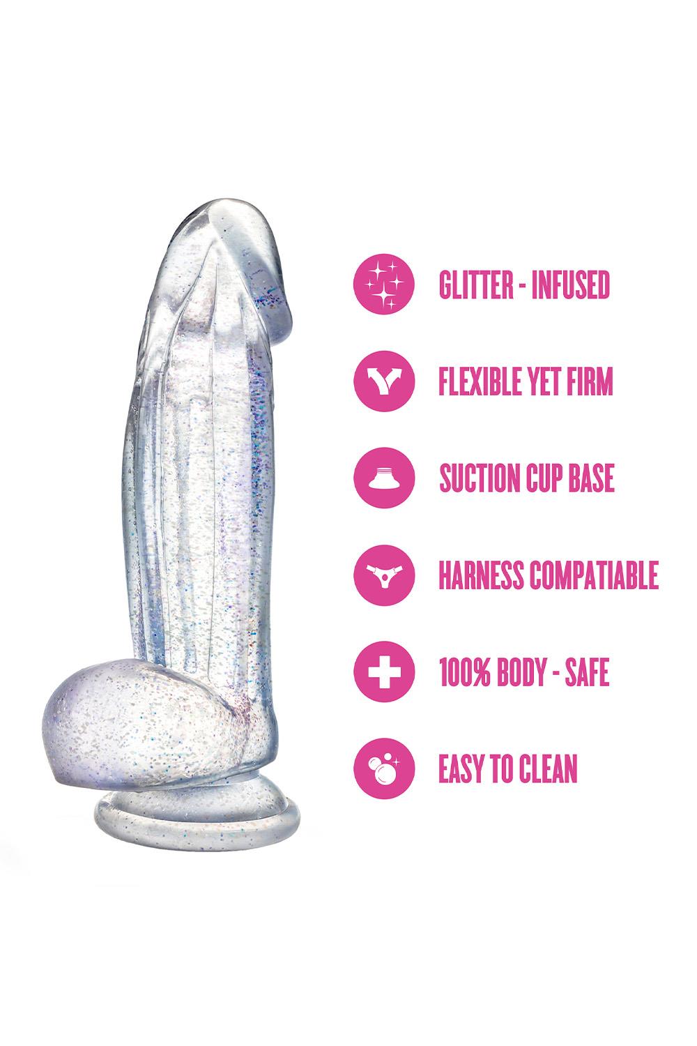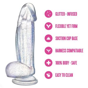 Step into the spotlight with Bling, the glittering star of your pleasure collection. With its radiant color and subtle sparkle, Bling adds a touch of glam to every intimate moment. Perfect for those who like their toys with a little extra flair. At 7.5 inches, it’s a versatile size that’s ideal for both solo exploration and partnered play. Designed to be flexible yet satisfyingly firm, Bling adapts to your movements while offering a fulfilling experience. The strong suction cup base secures easily to smooth surfaces for hands-free fun and is fully harness compatible, giving you endless options for playful discovery. With its 100% body-safe design, Bling is easy to clean and always ready for an encore. Whether you’re indulging in a solo performance or sharing the stage with a partner, Bling ensures every scene ends with a standing ovation.Glitter-infused for vibrant colour and sparkleFlexible yet firm for maximum pleasureSuction cup base and harness compatible100% Body-safe, travel-friendly, easy to cleanLength: 7.5 inch / 19 cmInsertable length: 5.5 inch / 14 cmWidth: 2 inch / 5 cm