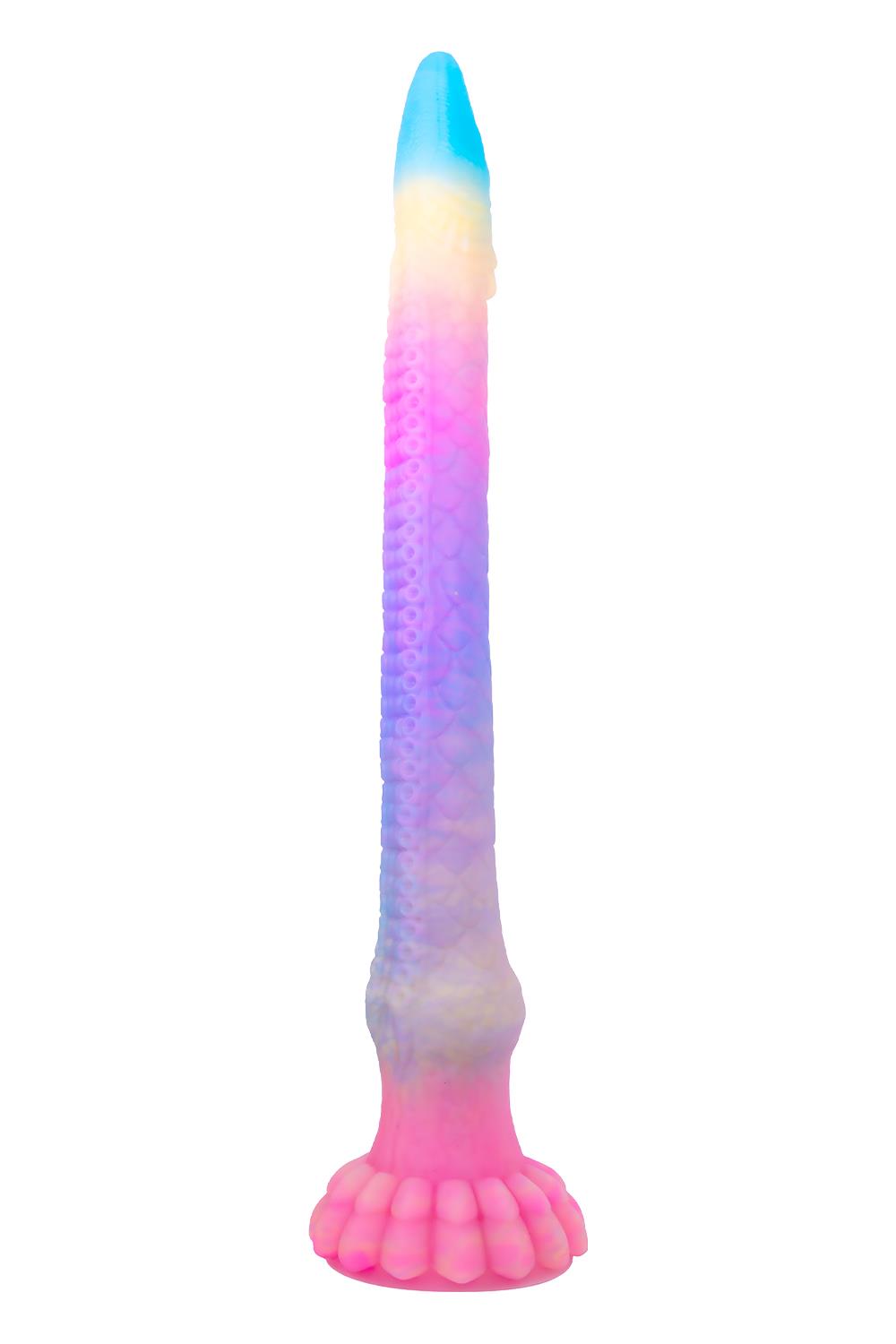 Monster dildo with strong suction cupWith glow in the dark effectMade of Liquid SiliconeSilky surfaceFlexible and pliableUnique designStrong suction cupLength 16,5 inch / 41,9cm