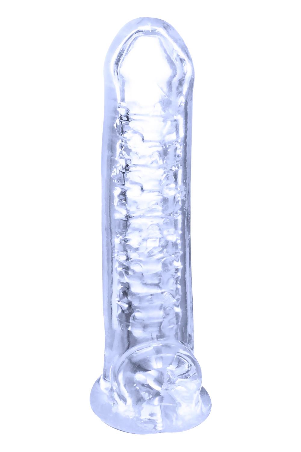 Penis length enhancerMade of highly transparent TPEFlexible and pliableSoft and hygienicLength inside 5.5 inch / 13,9 cmExtension 3.5 inch / 8,9 cmLength outside 7 inch / 18 cm