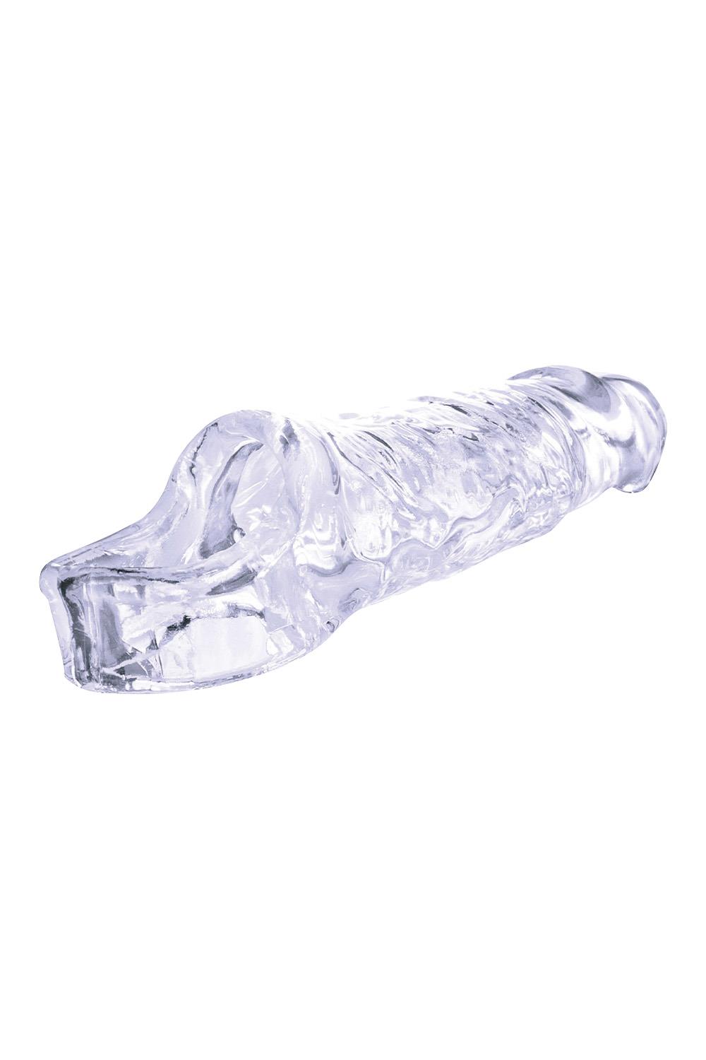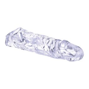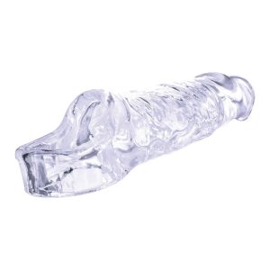 Extension sleeve with ball strapMade of highly transparent TPEFlexible and pliableSoft and hygienicLength inside 3.5 inch / 8,9 cmExtension 1.5 inch / 3,8 cmLength outside 5 inch / 12,7 cm