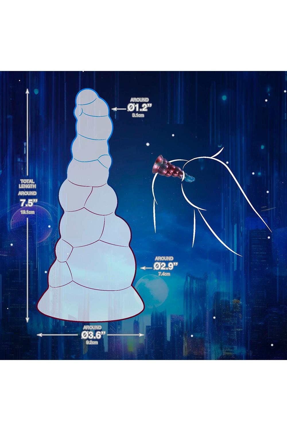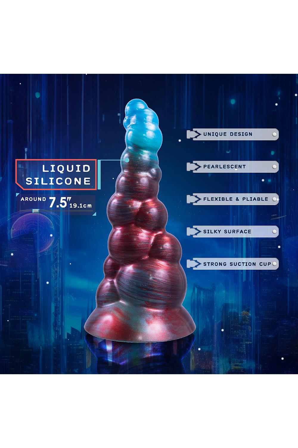 Monster dildo with strong suction cupWith pearlescent effectMade of Liquid SiliconeSilky surfaceFlexible and pliableUnique designStrong suction cupLength 7.5 inch / 19 cm