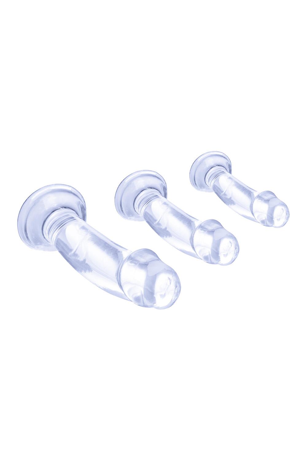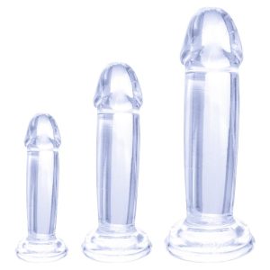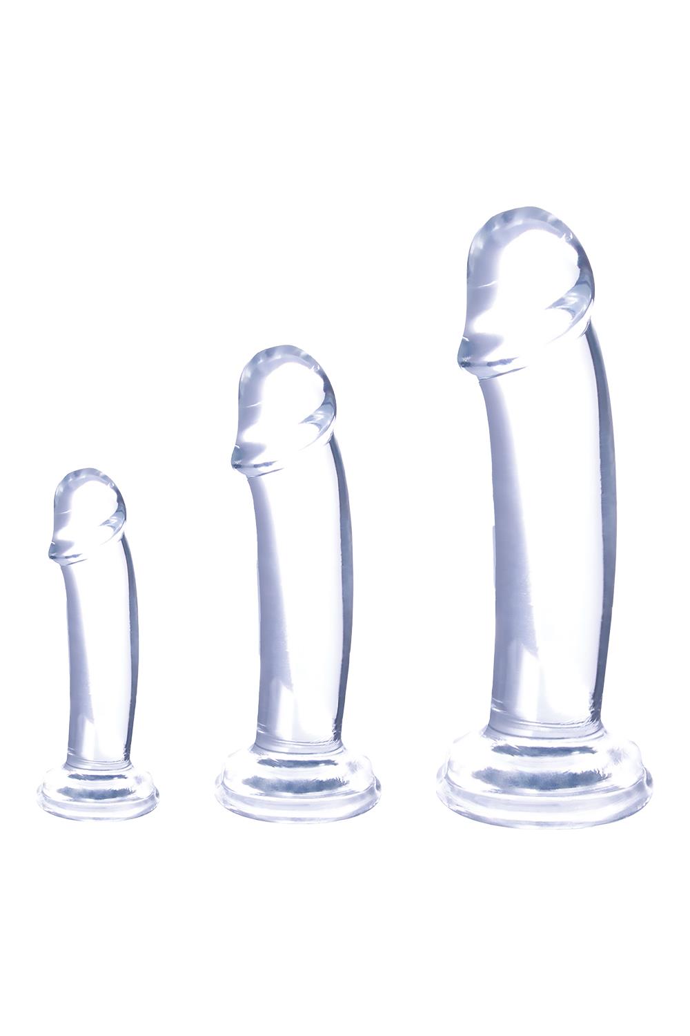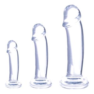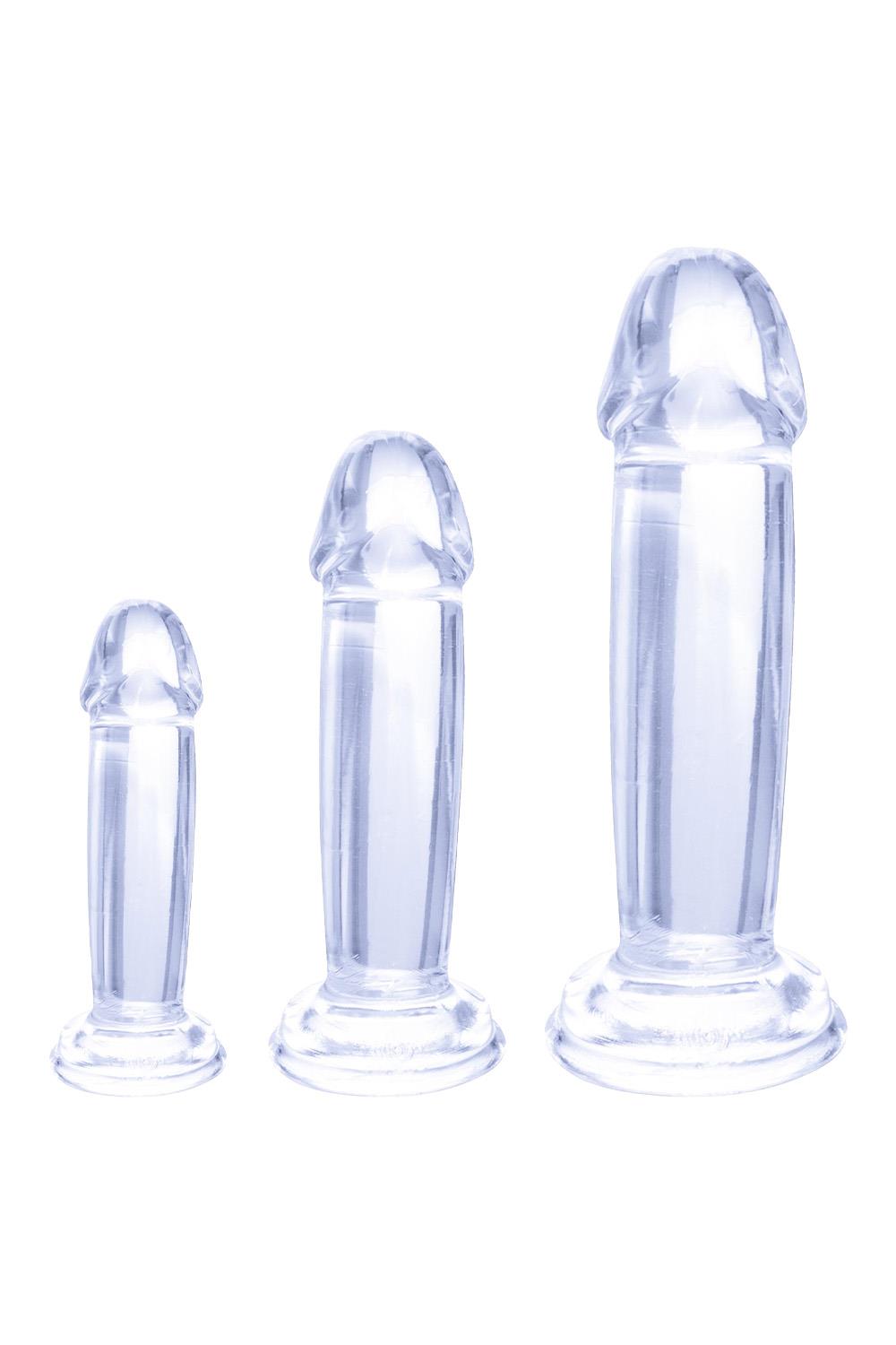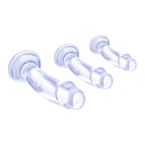 Triple Lover – 3 pc Training KitSet with 3 dildosMade of highly transparent TPEFlexible and pliableSoft and hygienicSuction cup baseSizes: 3.1 inch, 4.7 inch, 6.3 inch / 7,8 cm, 11,9 cm / 16 cm