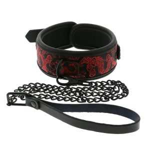 Ten zestaw Collar & Leash ma miękki, wygodny kołnierz z haftowanymi zdobieniami. Łatwo dopasować rozmiar dzięki zapięciu na klamrę. Metalową smycz z przymocowaną pętlą na nadgarstek można łatwo zapiąć lub odpiąć za pomocą klipsa muszkietonowego.