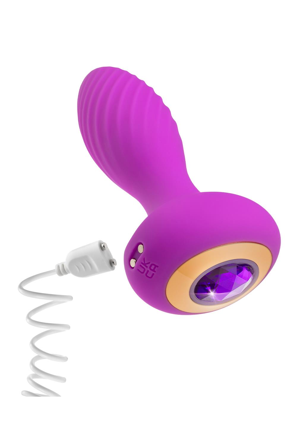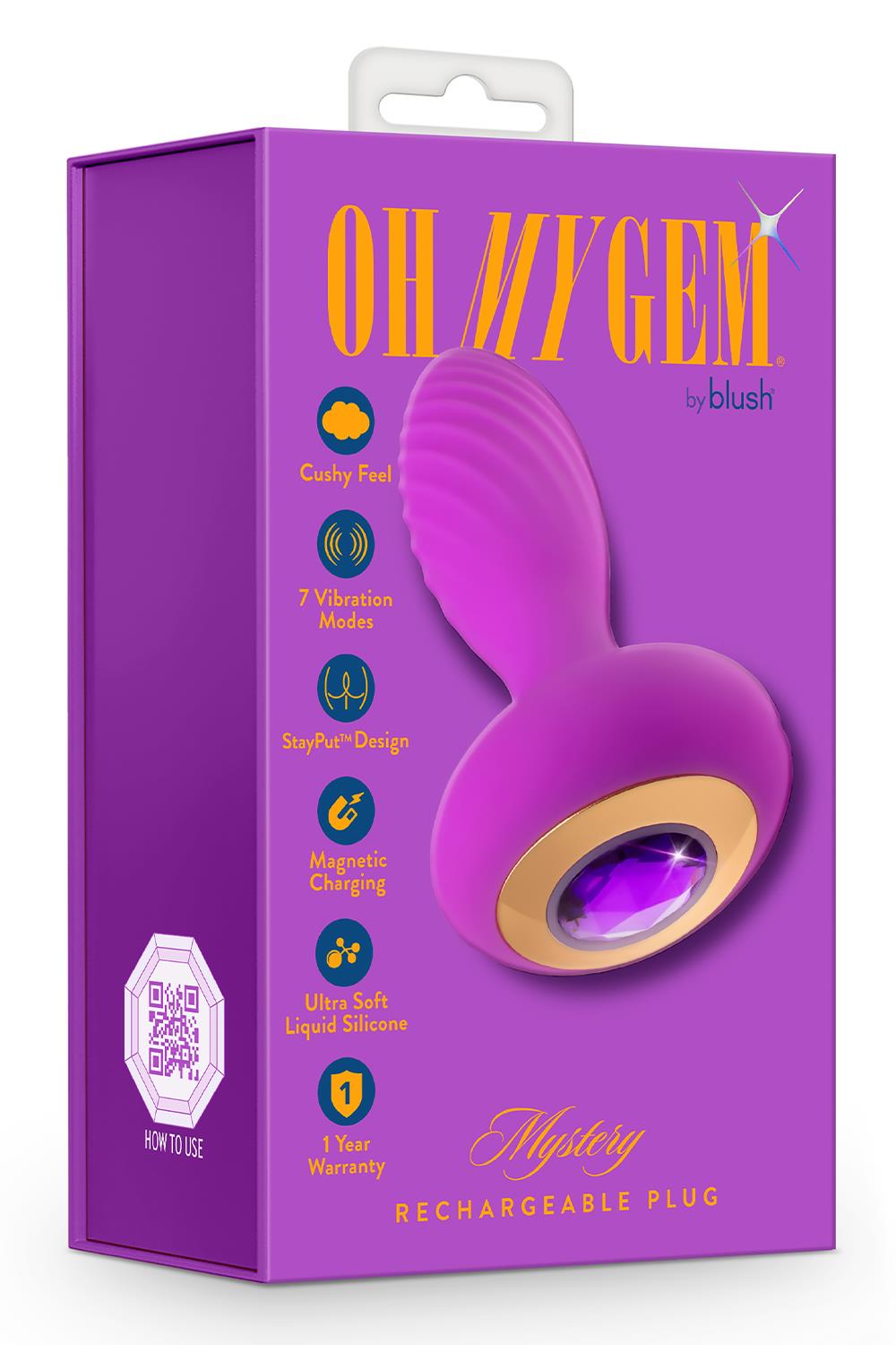 Channel your most passionate desires with the Oh My Gem Charm. Adorned with a glowing amethyst gem at its base, the Charm anal plug captures the energy and allure of this stunning stone. Tap the amethyst gem to explore 7 deep vibration settings, including 3 speeds and 4 unique patterns, igniting sensations from within. With our StayPut™ design, the Charm plug remains securely in place for long-term wear. Crafted from 100% body-safe, platinum-cured liquid silicone, it offers a satin-smooth feel, is non-porous, and super easy to clean. The plug’s soft and squishy tip ensures comfortable insertion, while its textured surface enhances pleasure. Magnetic charging provides convenience, delivering up to 60 minutes of sustained vibration on a full charge. Embrace the luxurious allure of the Oh My Gem Charm and indulge in the deepest desires of your heart.Oh My Gem Charm Rechargable PlugCushy feel7 Vibration modesStayPut™ DesignMagnetic chargingUltra soft liquid siliconeLength 4.5 inch / 11,4 cmInsertable length 3 inch / 7,6 cmWidth 1.25 inch / 3,2 cmManual: Video Manual