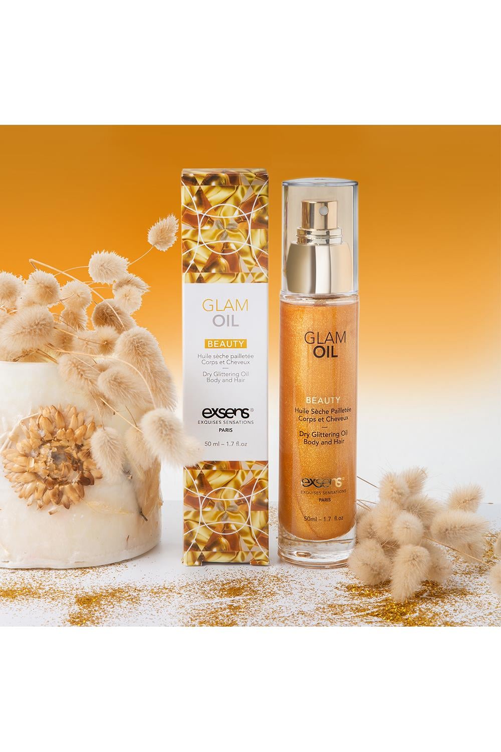 Wejdź w światło reflektorów! Suchy olejek do ciała ze słodkimi migdałami, dzięki swoim właściwościom odżywczym i zmiękczającym, dodaje skórze i włosom olśniewającego blasku. Rozświetl i upiększ swoją skórę delikatnym, złotym blaskiem, który utrzymuje się przez całą noc!