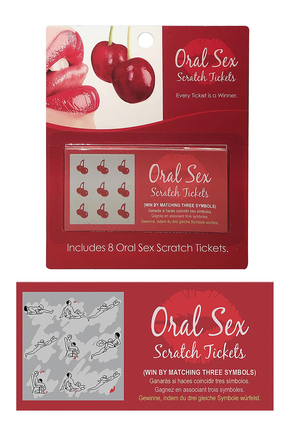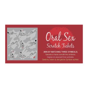 Get lucky with every ticket with 8 winning tickets of oral pleasure. Whenever you want oral sex from your lover, scratch off a ticket to reveal an oral sex adventure. Then redeem with your lover and decide who assumes each position. Give as a gift or share as a couple.Graphics are non-gender specific, so ANY couple can playIn English, Spanish, French and GermanIncludes: 8 Scratch Off Tickets