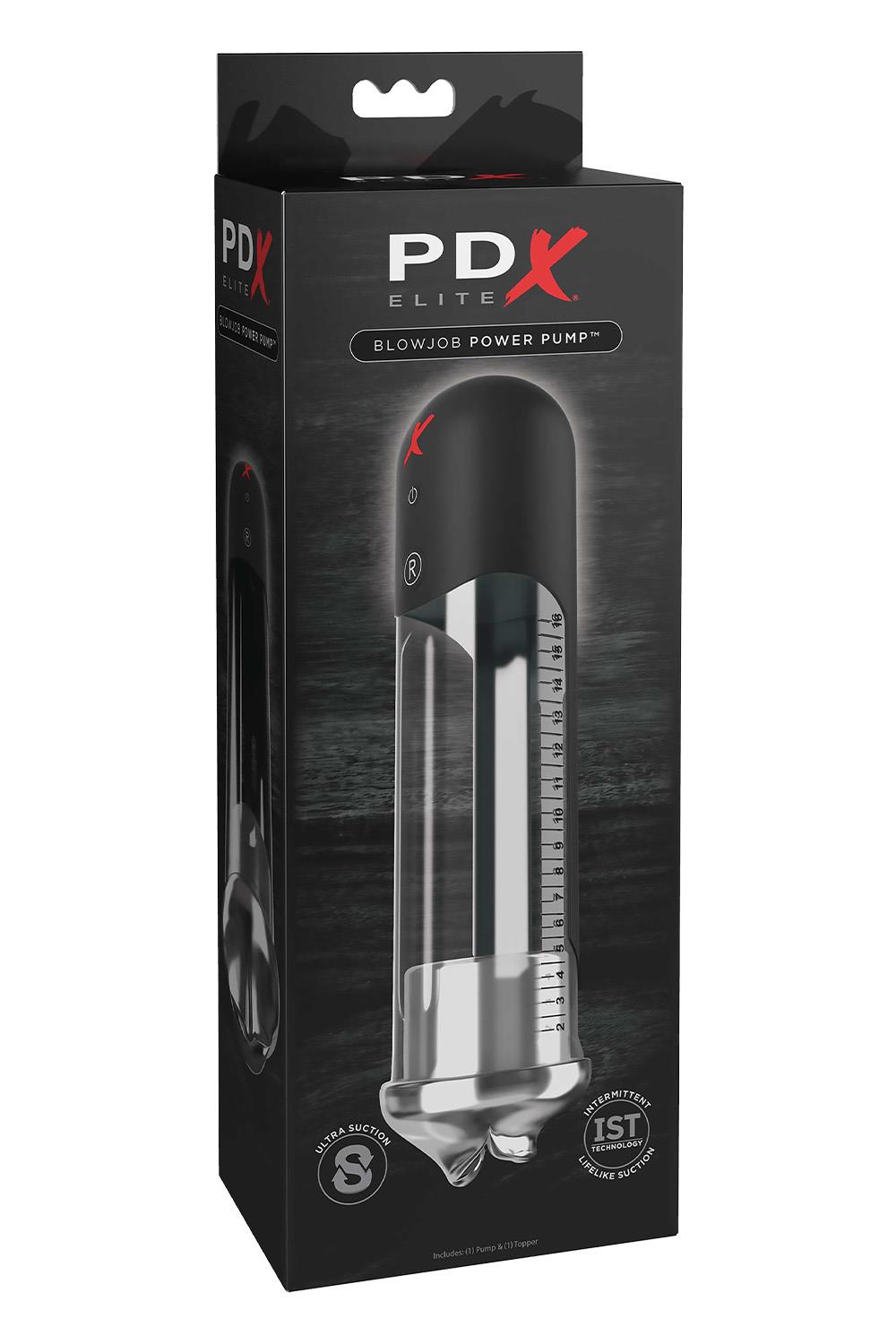 Incredibly realistic intermittent suction provides a lifelike „”milking”” sensation for the best blow job of your life! Customize your pleasure just the way you want it! Enjoy realistic intermittent suction by itself, or thrust to enjoy deep-throat stroking action whatever you’re in the mood for! Become bigger and thicker than ever before! The crystal-clear tube is designed for a firm grip and has a convenient ruler to gauge your expansive growth and a magnifying section to view your increasing thickness. Supple lips on the stretchy TPR pleasure-donut help create a tight seal and firmly caress your shaft if you chose to use your PDX ELITE® Blowjob Power Pump as a stroker.