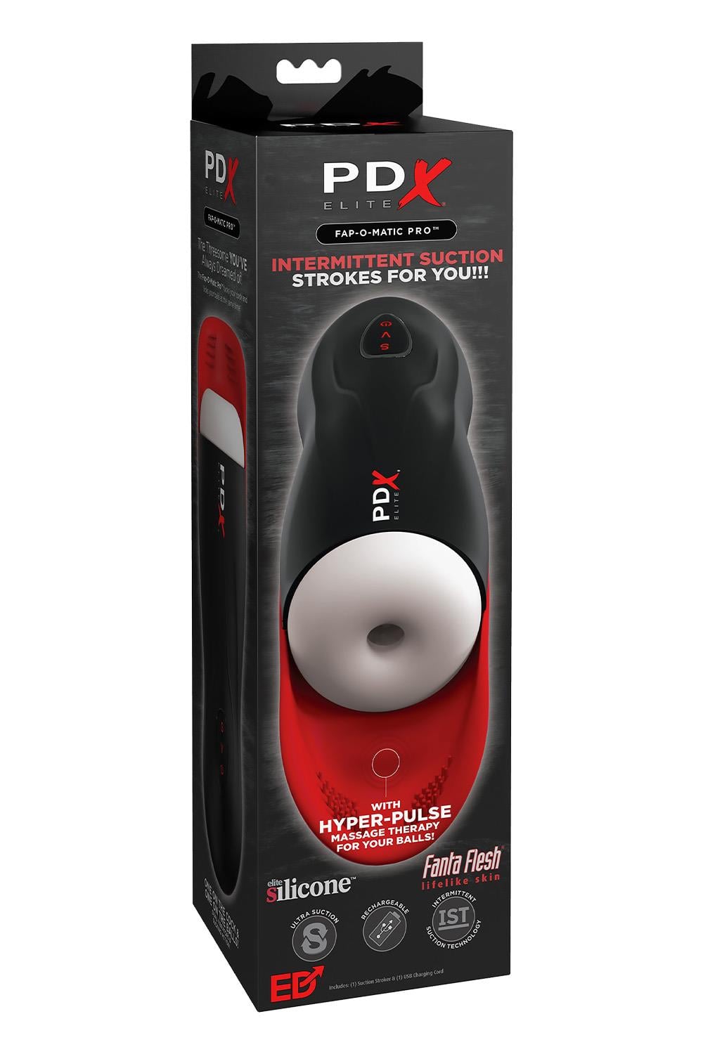 The PDX ELITE® FAP-O-Matic PRO™ elevates masturbation with powerful suction-action for the ultimate stroker experience. It’s a perfect storm of sensation for heightened solo sex sessions that can be customized to your personal moods! Get ready for explosive hands-free vibration surrounding your balls with rows and rows of soft pleasure nubs. Your ultimate masturbation experience is ready when you are!