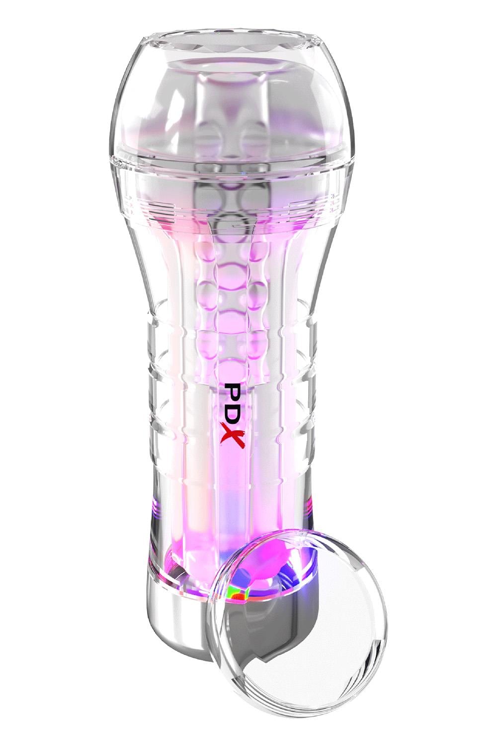 Get ready for a mind-blowing visual and sensory experience like never before! Watch as your cock looks bigger, bolder, and more powerful than ever — completely illuminated by a hypnotic LED light show that pulses with every stroke. The crystal-clear design lets you take in every inch of the action, amplifying your pleasure with a thrilling new perspective. It’s not just a stroke — it’s a show, and you’re the star!LED GLOWCORE CAP Immerse yourself in a mesmerizing lightshow that enhances every stroke with vibrant, pulsating colors. Light show lasts for days!XXL SIZE Designed for maximum comfort – accommodating most sizes!VIEWTUBE SEE-THRU DESIGN Take your pleasure to the next level as you watch every thrilling moment unfold in crystal-cleardetail.AIRLOCK CAP WITH RELEASE VALVE Customize your experience with precision suction control. Tighten for maximum intensity or loosen to release pressure when you’ve reached your peak!ULTRA-SOFT INTERNAL TEXTURE Sensational textures line thesleeve’s inner chamber, delivering mind-blowing stimulation with every glide.GlowCore Cap IPX6 – Water-Resistant: Protected against high-pressure water streams from any angle.AirLock Cap IPX8 – Waterproof: Protected against continualsubmersion underwater.Includes: 1 XXL Stroker, 1 LED GlowCore Cap, 1 AirLock Cap, & 1 Charging CordMaterials: TPE & ABS PlasticThe PDX Elite ViewTube XXL LED Stroker sleeve is removable for easy cleaning. Simply pry the edges of the TPE to remove the sleeve. Cleanup is a snap after the fun with antibacterial cleaner and warm water. If desired, use a water-based lubricant with this product.