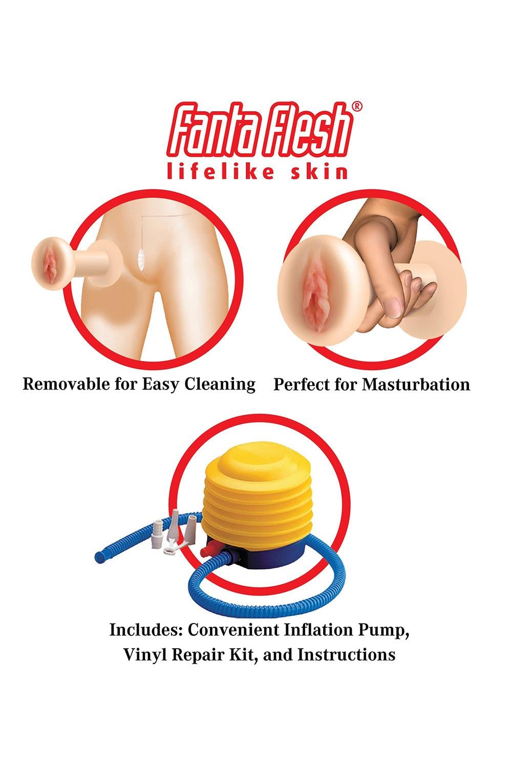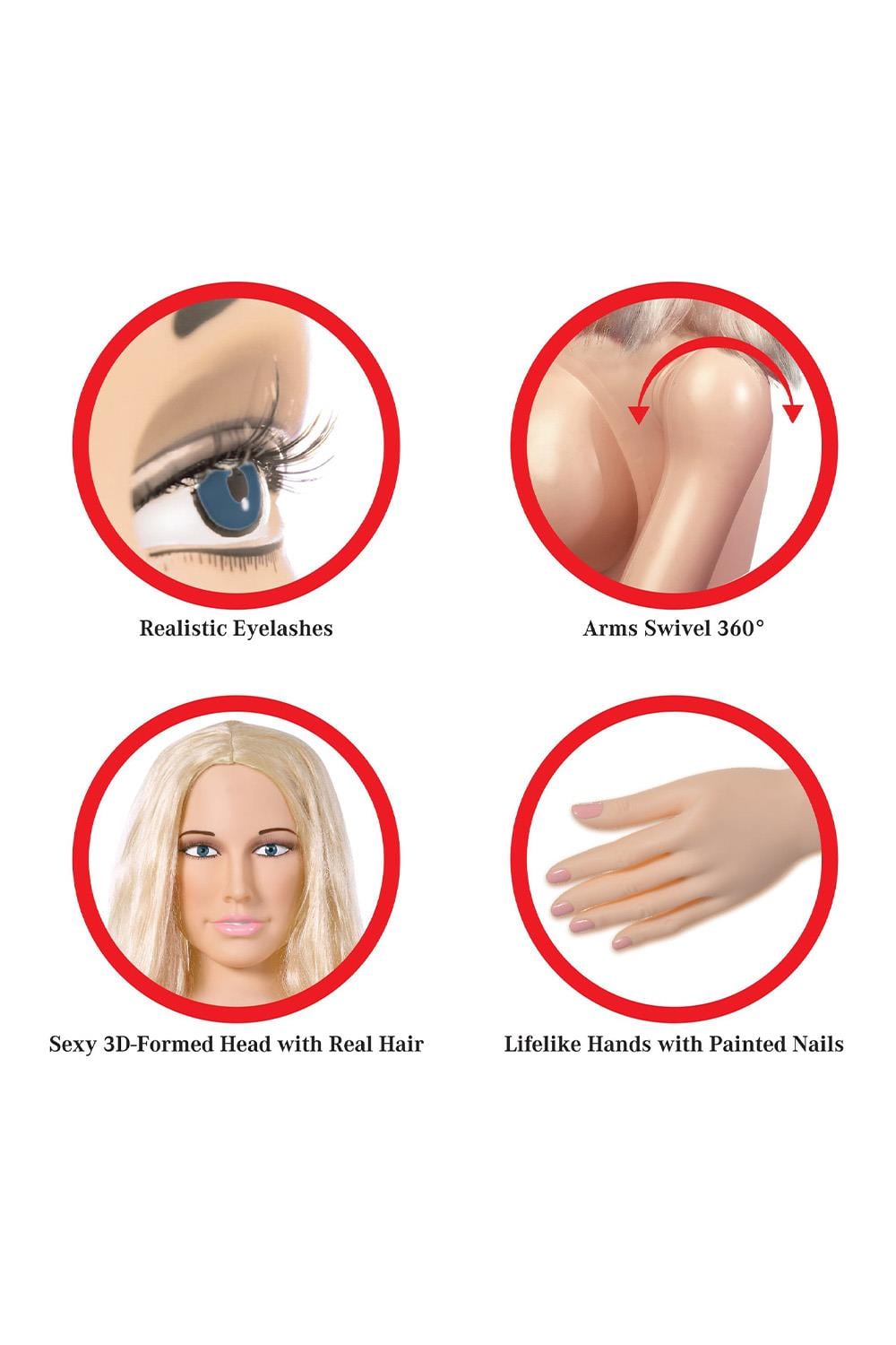 This incredible Hannah Harper life-size inflatable love doll was meticulously designed with realistic features for a truly lifelike experience. Her sexy 3D formed head features realistic eyelashes and a luxurious head of real hair that’s begging to be pulled! Watch her really come to life with arms that swivel 360 degrees and delightfully painted finger and toenails. Give her firm and perky breasts a squeeze while you enjoy her ultra-lifelike Fanta-Flesh skin, pussy, and ass that feels even better than the real thing! The Fanta-Flesh pussy and ass are removable for easy in-depth cleaning, and can even be enjoyed separately for masturbation.