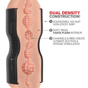 Made from our ultra-lifelike Fanta Flesh® on the inside and our specially formulated Tight Grip TPR on the outside, this super soft stroking sleeve features a firm outer construction that allows you to get a tight grip and perfect squeeze every time. The ergonomic shape feels great in your hands and won’t get slippery or sticky, allowing you to get a perfect stroke even when your hands are lubed up!