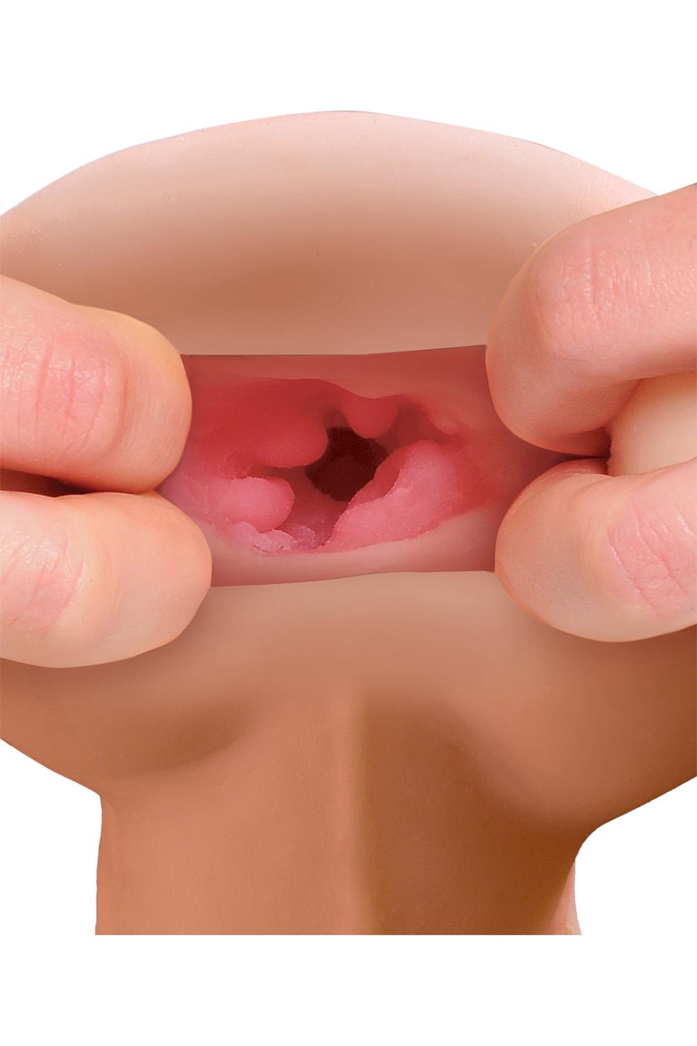 PDX MALE® Reach Around Stroker delivers an incredible pleasure combination with a tight asshole and a realistic cock. Created with ultra-soft Fanta Flesh® material, the interior tunnel surrounds your shaft with intense textured stimulation. The lifelike veined cock exterior allows for a secure grip and easy squeezing.