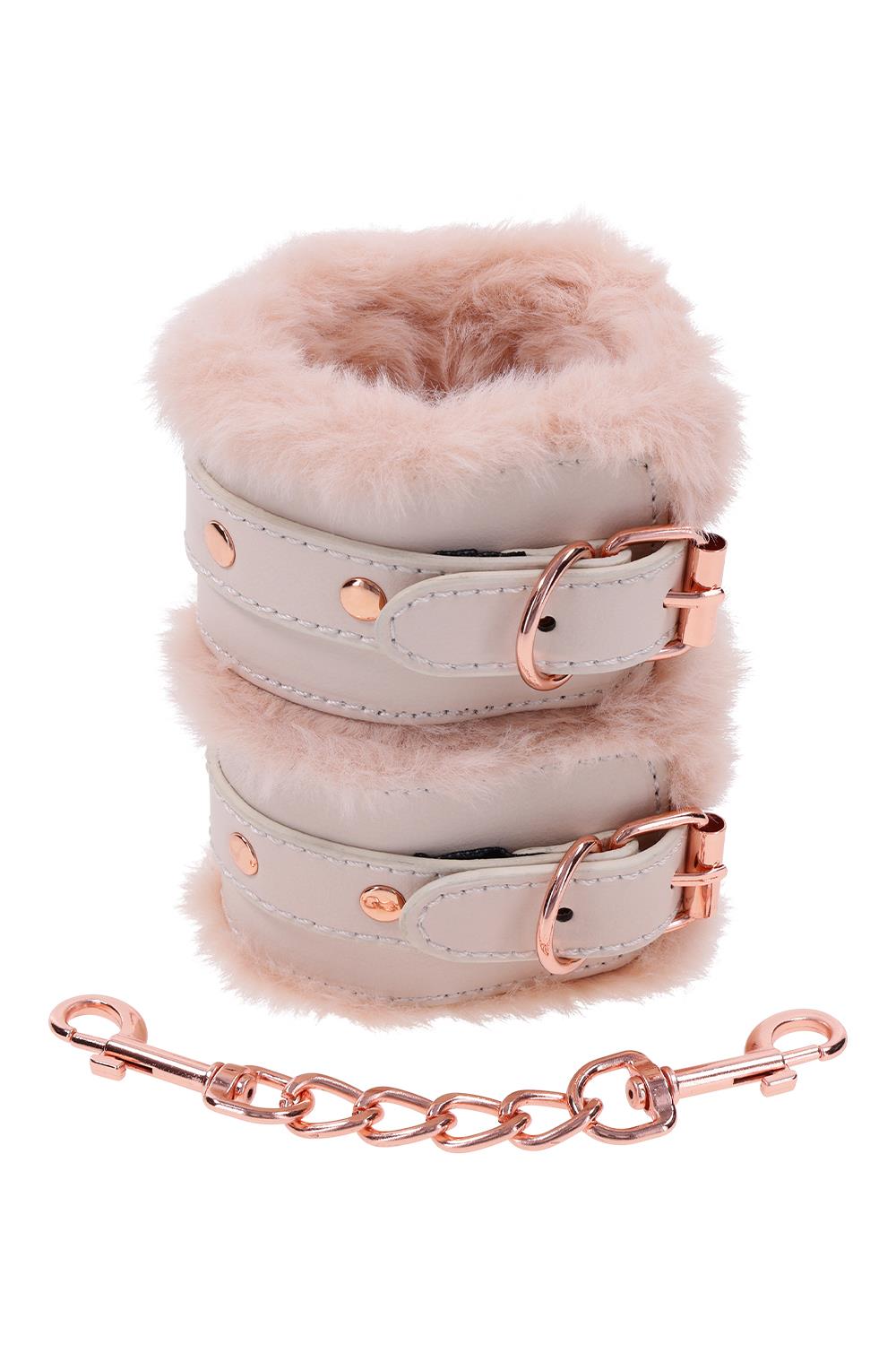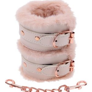 Indulge in a world of playful pleasure with our Peaches ‘n CreaMe Faux Fur Cuffs! These handcuffs are not just an accessory; they’re a flirty invitation to elevate your intimate moments. Wrapped in the softest light peach-colored faux fur, the cuffs provide a luxurious sensation against your skin, adding a touch of sophistication with a subtle shimmer. Effortless to wear and remove, the secure clasp ensures a teasing release when you’re ready. Explore your fantasies in gentle bondage because life is too short for anything less than peachy perfection!Faux fur inner lined cuffs with faux leather Nickel-free rose gold plated hardware with 5.5”/ 13,9 cm chain 9” / 22,8 cm cuffs with adjustability buckleMaterials: 50% Polyurethane, 30% Polyester, 15% Iron, 5% Zinc Alloy
