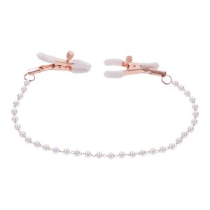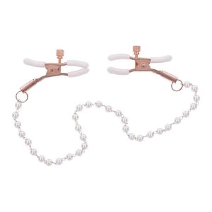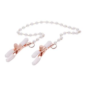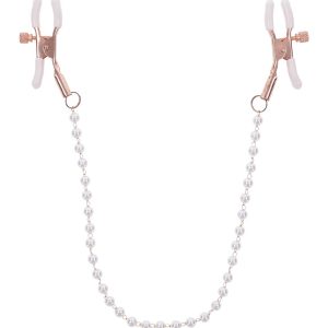 Take a tastefully tantalizing step into deeper sensations with the Peaches n’ CreaMe Pearl Nipple Clamps. Explore delicious sensitivity right where you want it most with dual adjustable clamps in stunning rose gold with pearl accents. White rubberized tips add a playful pop of color to your play and keep the clamps from slipping as you tease and pull your lovers chain, bringing intense feelings to their body.